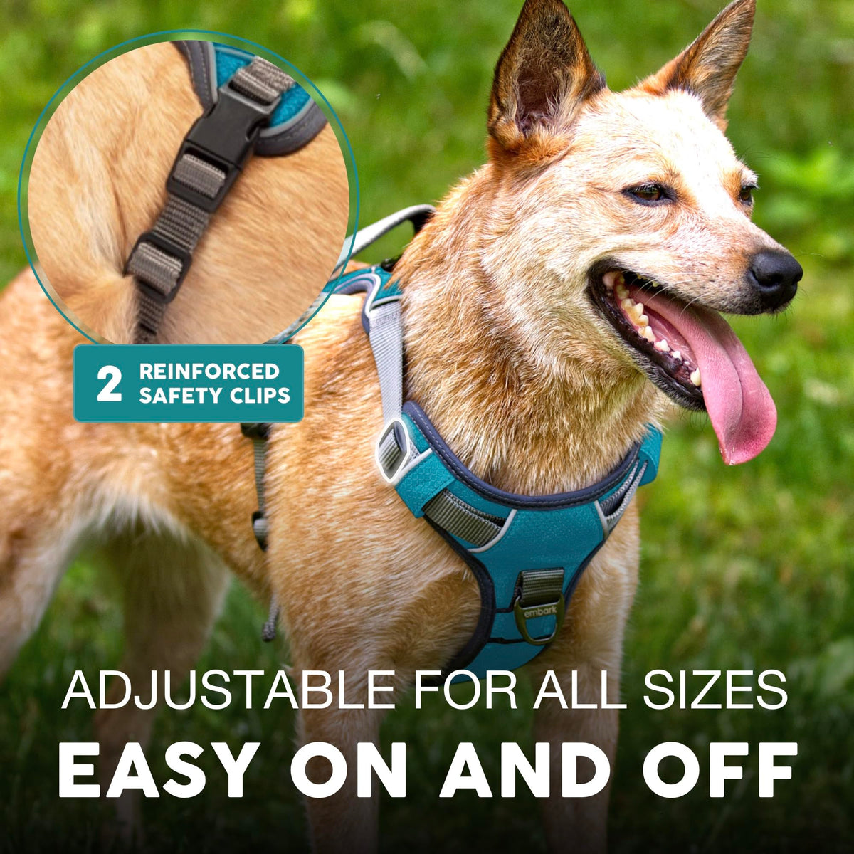 Embark Adventure Dog Harness, No-Pull Reflective Trim Dog Harness For Small, Medium & Large Dogs - Military Grade Nylon, 2 Leash