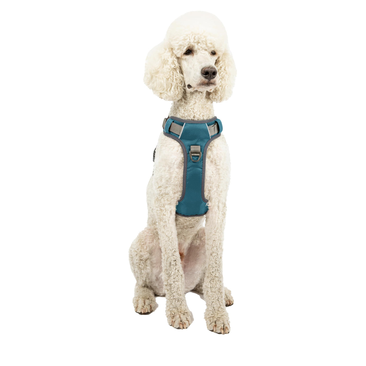 Q: Is this dog harness suitable for no-pull training?A: Yes, the Embark Adventure Dog Harness is designed for no-pull training. It features a front D-ring attachment that helps to discourage pulling while walking, promoting a more enjoyable experience for both you and your dog without causing pain or choking.