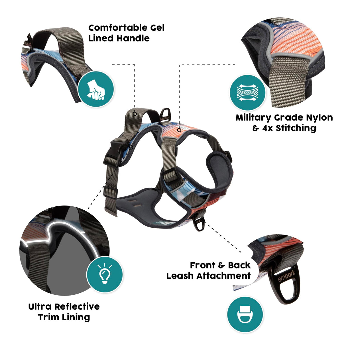Embark Adventure Dog Harness, Reflective Trim No Pull Dog Harnesses For Small Sized Dogs - Military Grade Nylon, Front Clip Dog Harness With Gel Lined Handle. Soft & Padded Puppy Dog Harnesses.