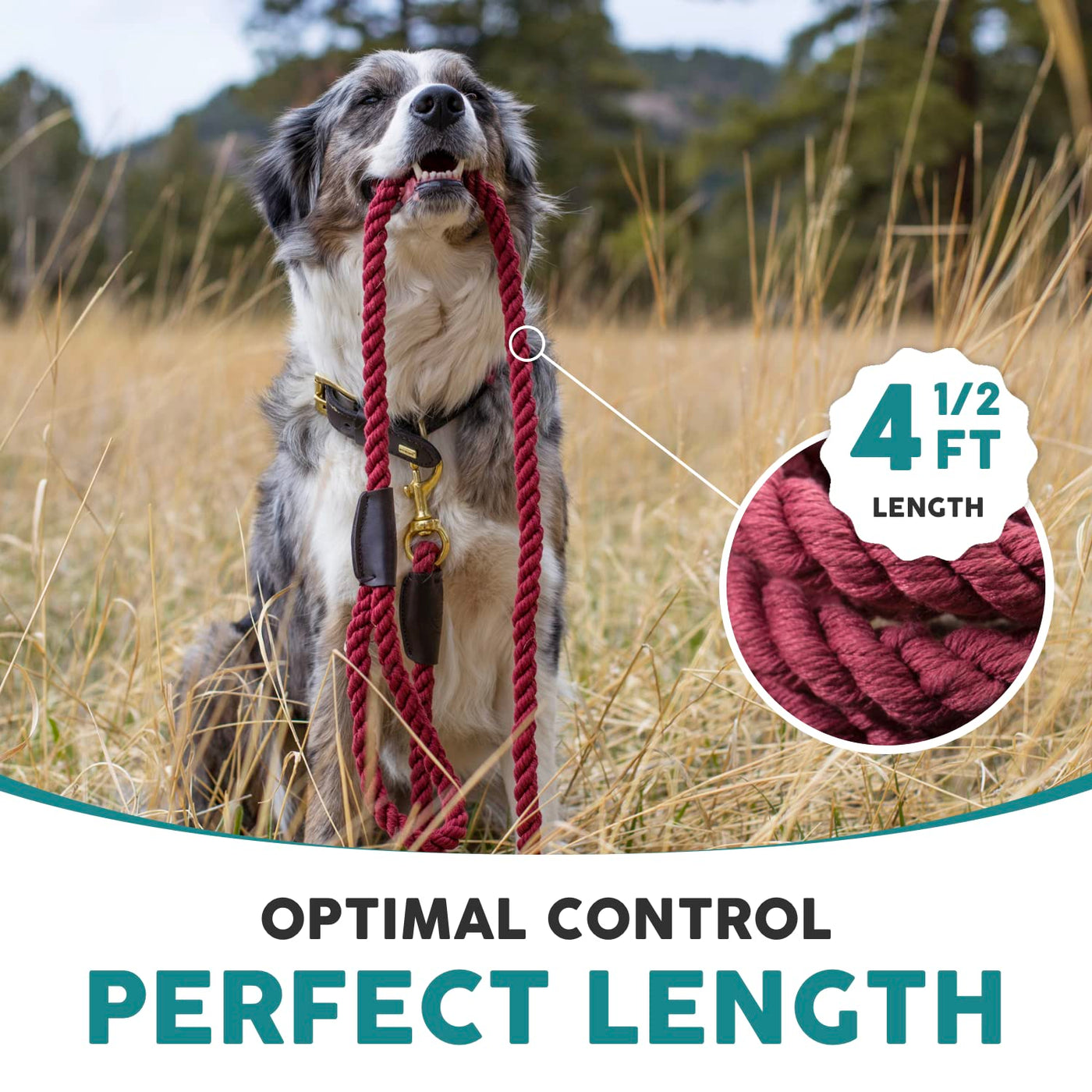 Embark Pets Country Dog Rope Leash ?Braided Cotton Rope Leashes For Dogs Thick Rope Dog Leash?Rope Leash For Small Dogs, Rope Leash For Medium Dogs, Rope Leash For Large Dogs (4.5 Ft, Bordeaux Red)