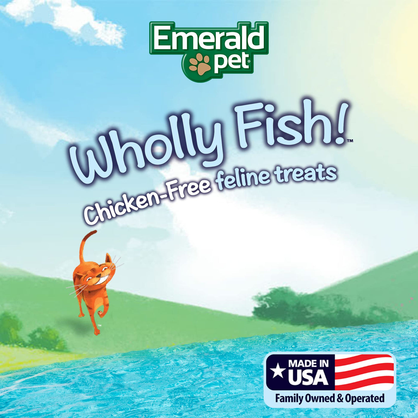 Emerald Pet Wholly Fish! Chicken-Free Feline Treats, Salmon Recipe - Tasty and Crunchy Salmon Cat Treats with Real Salmon - Chic