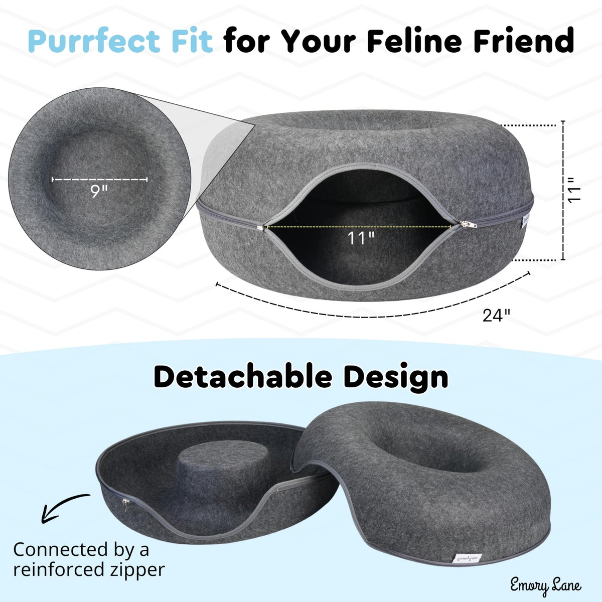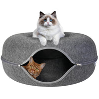 **Premium Felt Donut-Shaped Cat Cave House - Cozy, Multifunctional Tunnel With Detachable Cover - 24X24X11** **Give Your Cat The Comfort They Deserve!** Introducing The Ultimate Luxury Cat House - The **Felt Donut-Shaped Cat Cave House**, Thoughtfully Designed To Provide Your Feline Friend With A Cozy, Safe, And Stylish Retreat. This Premium Cat Bed Features A Soft Felt Material And A Unique Donut Shape That Offers Your Cat A Sense Of Security, Promoting Better Sleep And Relaxation. With A **Multifunctional Tunnel Design And Detachable Cover**, This Cat House Is More Than Just A Bed; Its A Hideaway, A Play Zone, And A Modern Addition To Your Home Decor. **Why Choose Our Cat Cave House?** ? **Cozy & Secure:** Crafted With Premium-Quality Felt, This Cat Cave Provides A Plush And Warm Sanctuary For Your Kitty. The Donut Shape Envelops Them, Giving A Snug And Secure Feeling That Cats Love. ? **Interactive Design:** The **Detachable Tunnel** Feature Creates Endless Play Possibilities. Your Cat Can Lounge Inside Or Engage In Playful Activities, Making This Cat House A Perfect Spot For Both Relaxation And Fun. ? **Modern Aesthetic:** This Cat Cave Isn'T Just Functional - It Looks Great Too! Its Minimalist Design And Neutral Color Make It A Stylish Addition To Any Room, Complementing A Variety Of Home Interiors. ? **Easy To Clean:** With Its Removable Cover, Maintaining A Clean Space For Your Cat Is Easier Than Ever. The Felt Material Can Be Spot-Cleaned, Ensuring A Fresh And Hygienic Environment For Your Pet. ? **Perfect Size For All Cats:** Measuring **24X24X11**, This Spacious Cat Cave Is Ideal For Cats Of All Sizes, Offering Them Plenty Of Room To Stretch, Curl Up, Or Hide Away. Whether You Have A Kitten Or A Fully Grown Cat, This Bed Is Designed To Accommodate All Breeds Comfortably. **Key Features:** - **Durable & Soft Felt:** Crafted With High-Quality Felt, This Cat Cave Is Durable Enough To Withstand Frequent Use While Remaining Soft And Comfortable. - **Multifunctional Tunnel:** The Detachable Tunnel Adds Versatility, Making This Product An Engaging And Interactive Space For Your Cat To Enjoy. - **Detachable Cover For Easy Cleaning:** Simply Remove The Cover For Quick Cleaning And Maintenance. - **Portable & Lightweight:** Whether You'Re Rearranging Furniture Or Traveling, This Cat Bed Is Easy To Move Around, So Your Cat Can Enjoy It Anywhere. **Customer Satisfaction Guaranteed!** We Know That Your Cats Comfort Is Your Top Priority, And Thats Why Weve Put Extra Care Into Designing A Product That Meets Their Needs. Were Confident That Both You And Your Cat Will Love This Unique Cat Cave House. If Youre Not Completely Satisfied, We Offer Hassle-Free Returns And A Customer Service Team Thats Ready To Assist You. **Create The Perfect Space For Your Cat Today!** Give Your Feline Friend A Place Theyll Love To Call Their Own. Whether They Want To Play, Hide, Or Sleep, This **Felt Donut-Shaped Cat Cave** Has Everything They Need. Treat Your Cat To The Comfort They Deserve And Add This Premium Cat Bed To Your Cart Now!