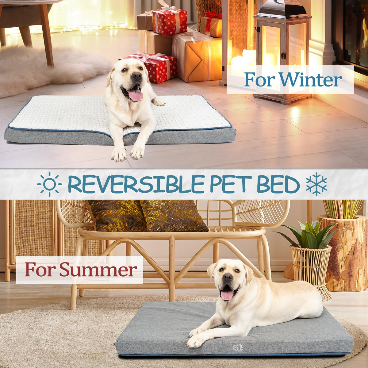 Empsign Reversible Cool And Warm Dog Bed For Crate Pad, Pet Beds With Washable And Removable Cover, Dog Crate Bed Sleeping Mats, Bed For Dog Crate For Large Medium Small Dogs, Grey