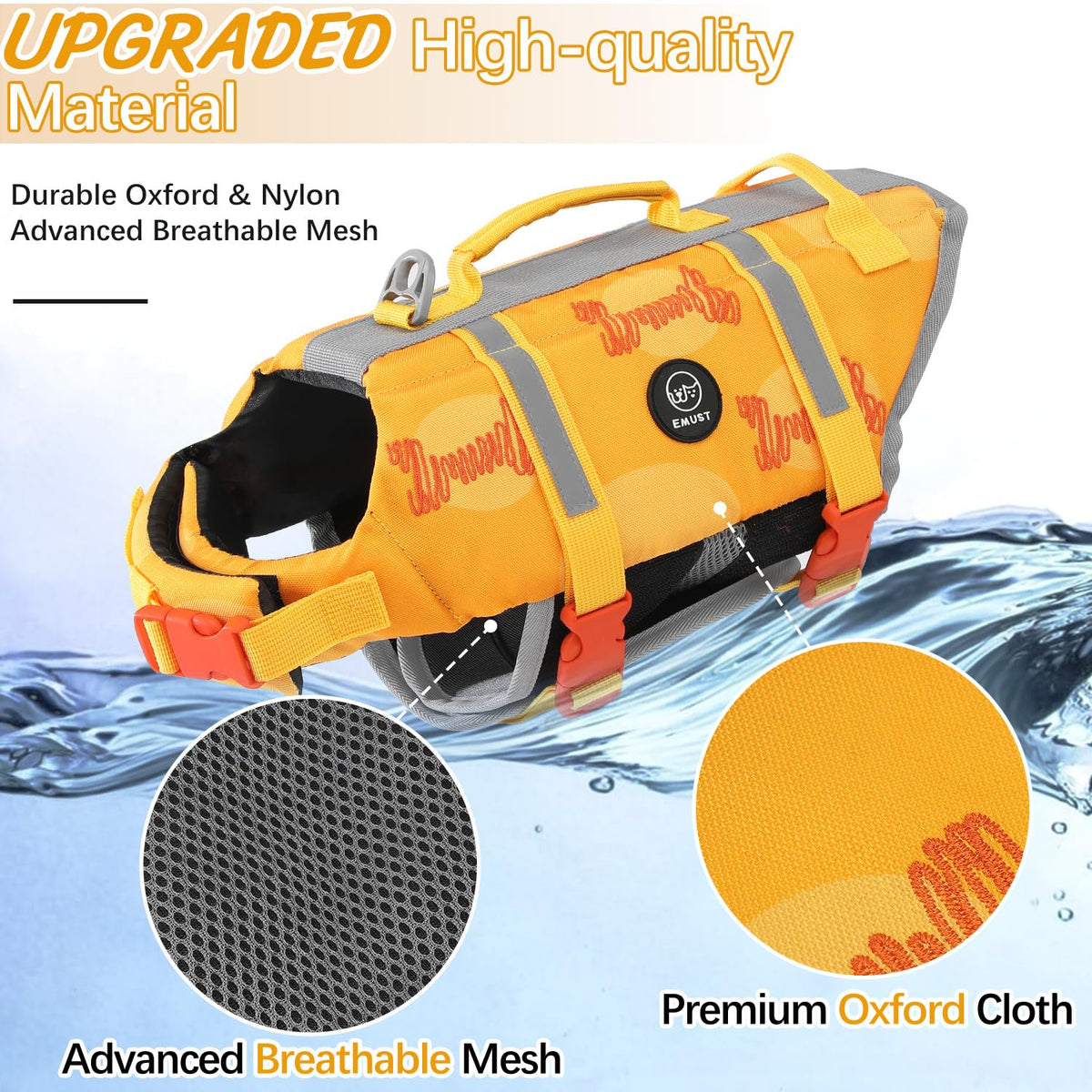 Emust Dog Life Jackets, Pet Life Vests For Swimming, Beach Boating With High Buoyancy, Exquisite Chinese Embroidery Style Dog Fl