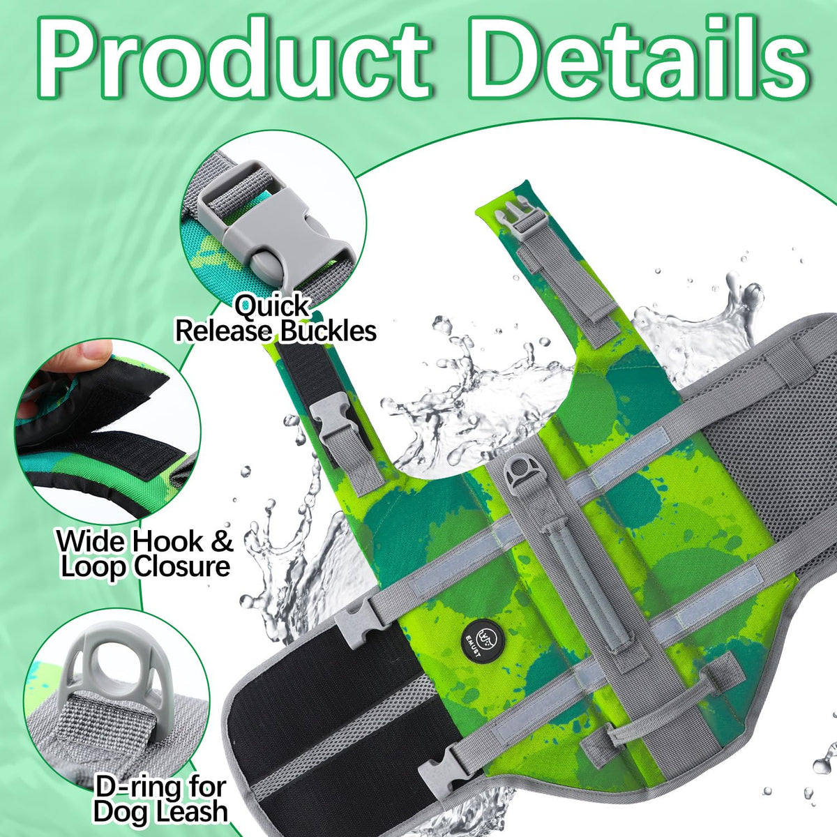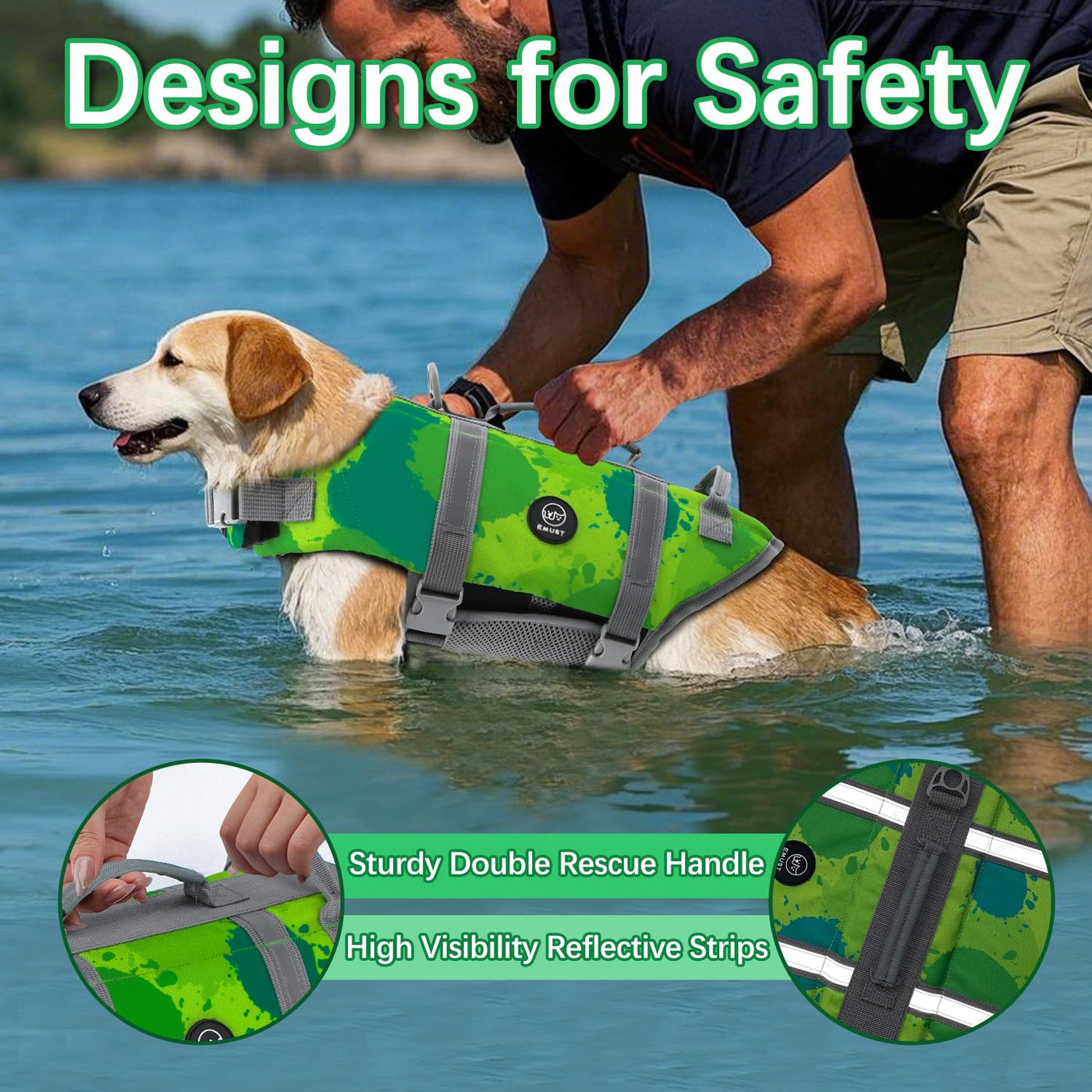Emust Dog Life Vests, Adjustable Dog Life Jacket With Rescue Handle, Dogs Flotation Vest For Small/Medium/Large Dogs, Xs, Multig