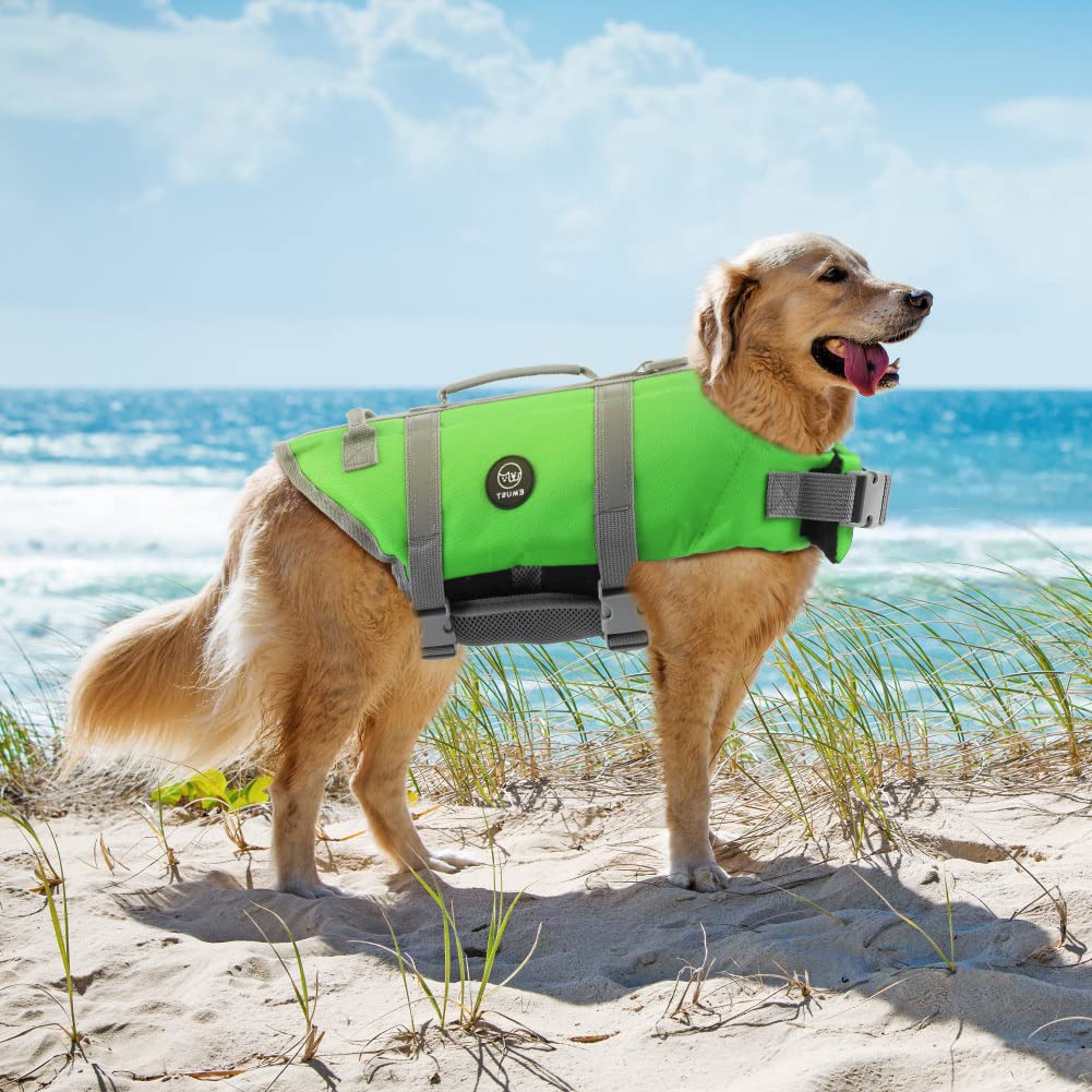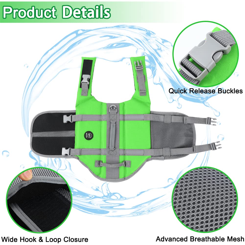 Emust Dog Life Vests, Adjustable Dog Life Jacket With Rescue Handle, Dogs Flotation Vest For Small/Medium/Large Dogs, Xs, Newgre