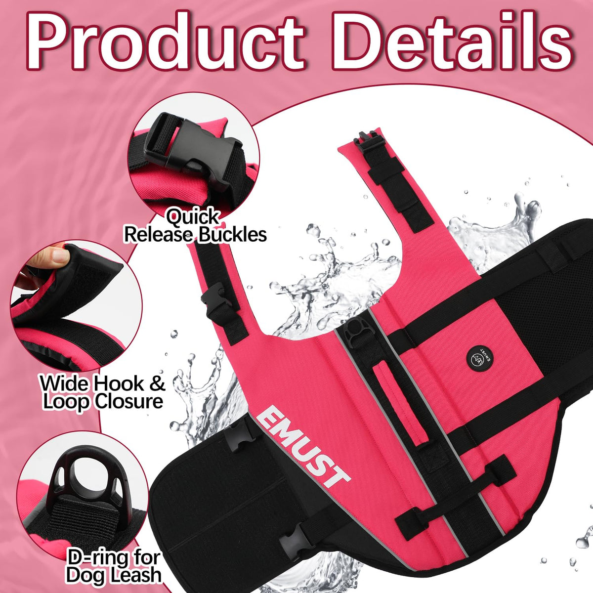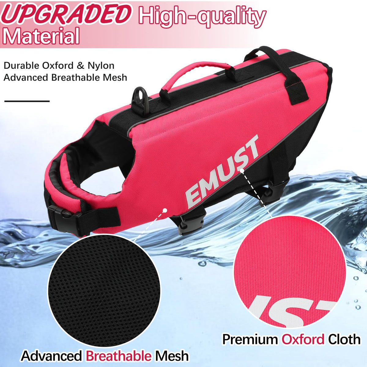 Emust Dog Life Vests, Adjustable Pet Life Jacket With Rescue Handle, Dog Flotation Device Dfd For Small/Medium/Large Dogs, M, Ro