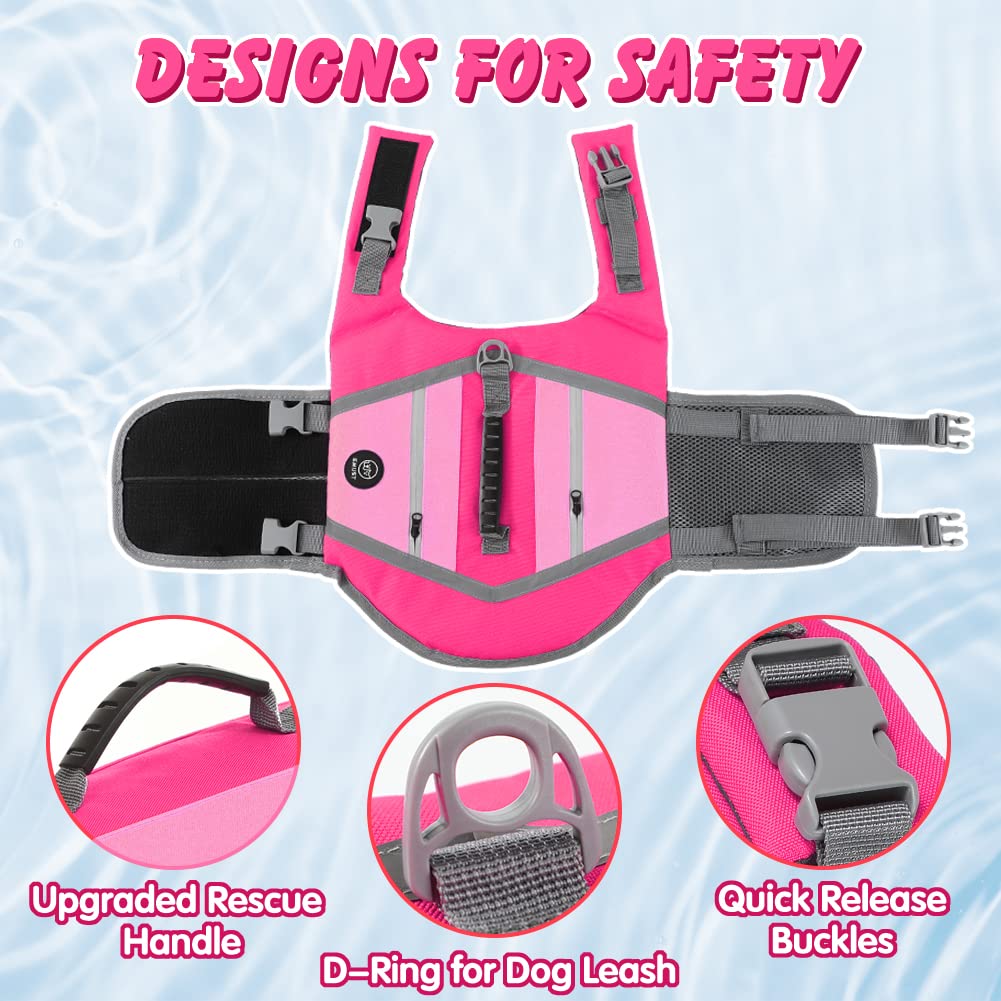 Emust Dog Life Vests For Boating, Water-Resistant Dog Swimming Vest With Rescue Handle, Comfortable Fit Dogs Life Jacket Medium