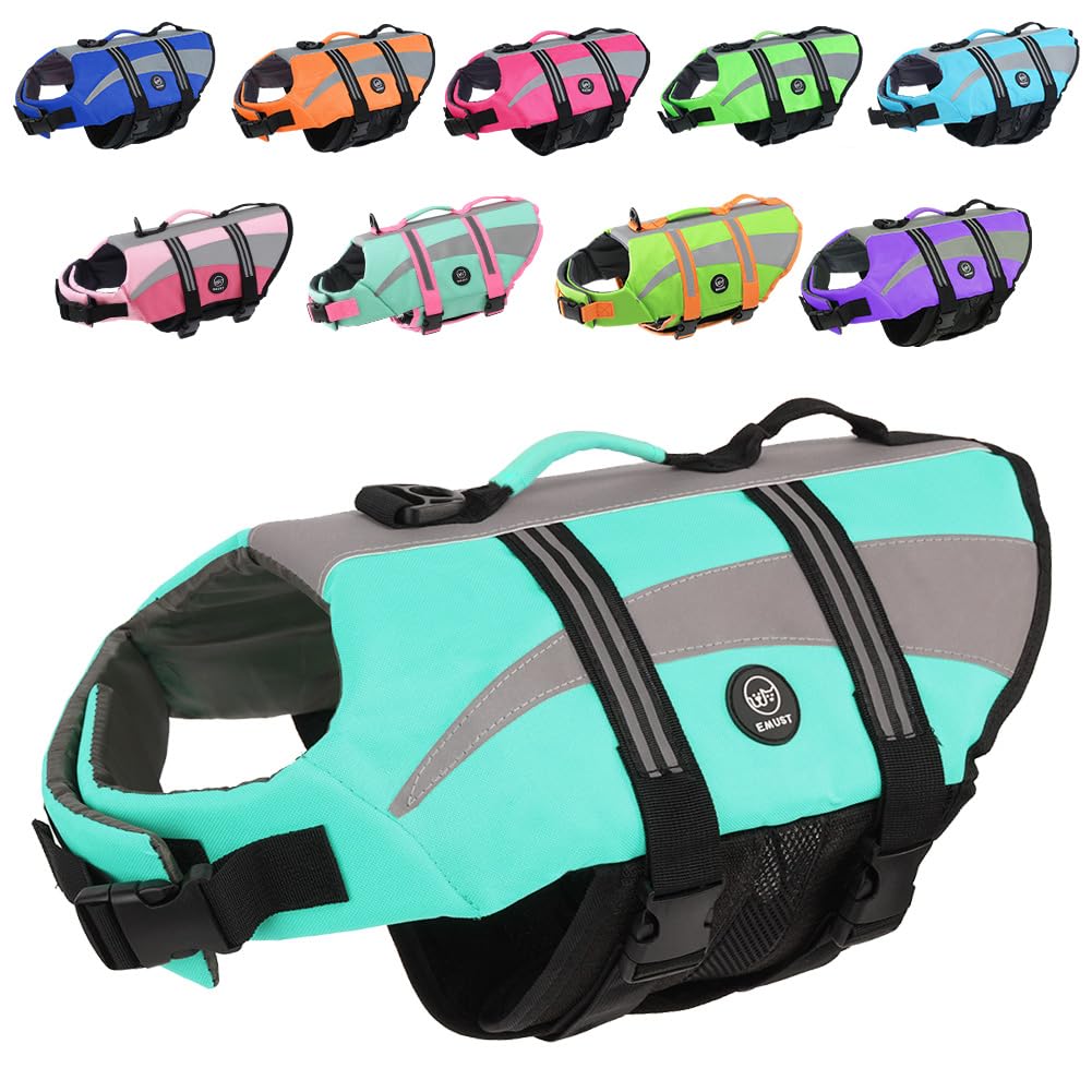 Emust Life Jacket For Large Dogs, Pet Life Vest For Small/Medium/Large Dogs With Double Rescue Handles, High Reflective Dog Life