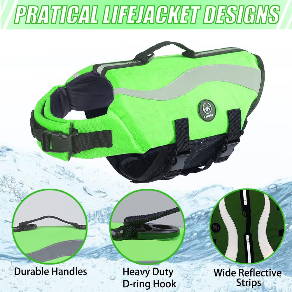 Emust Life Preserver For Dogs, Lightweight Small/Medium/Large, Xl Life Jacket For Swimming/Boat, Green