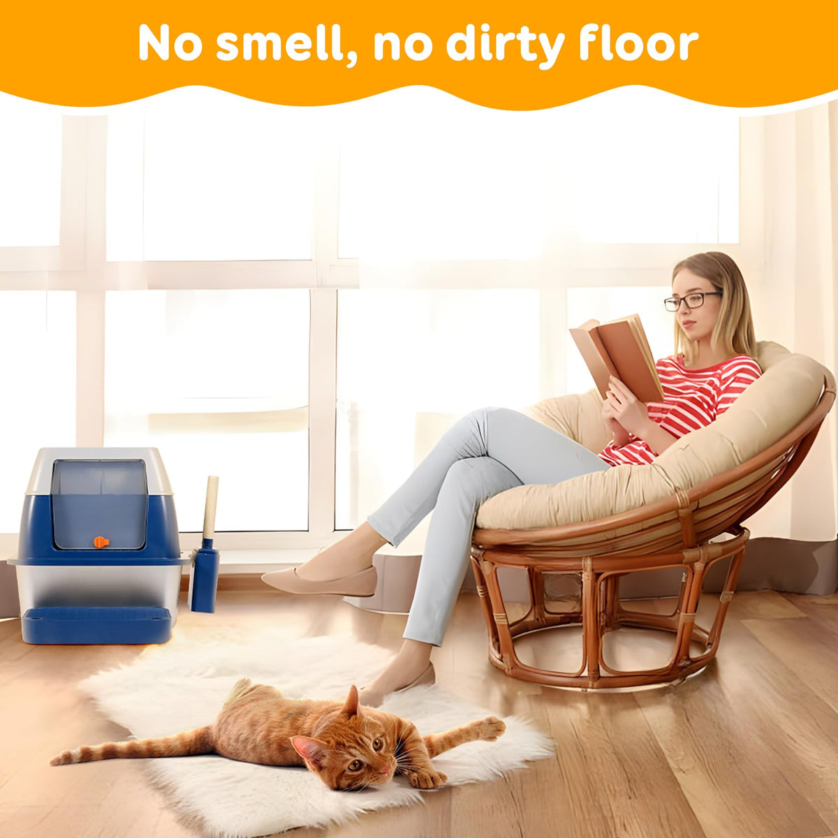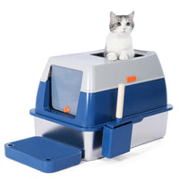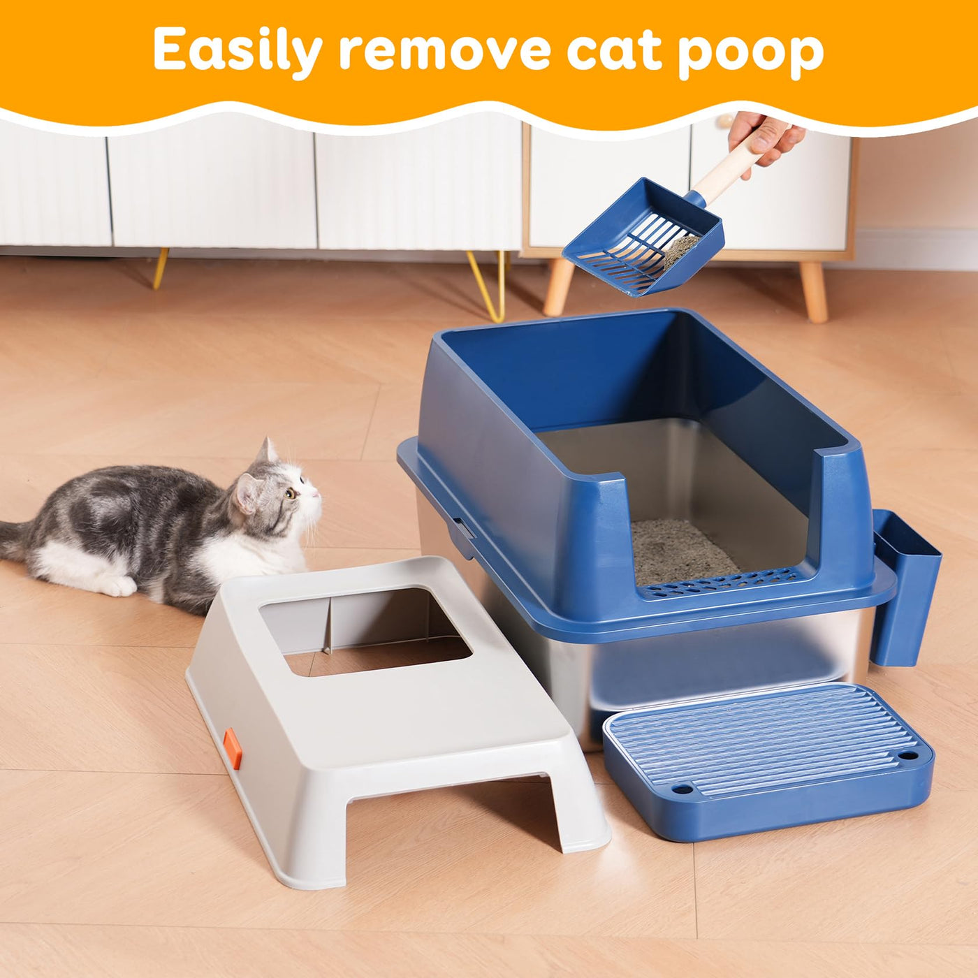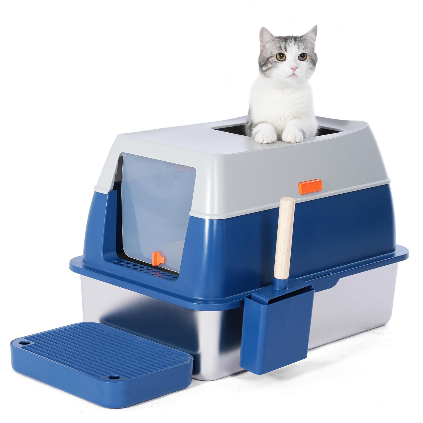 This Foxoru Enclosed Cat Litter Box With Lid Is Carefully Designed And Manufactured. Its Bottom Is Made Of Durable Stainless Steel, Which Is Not Easy To Deform Or Crack, Never Rust, And Is Easier To Clean And Maintain. The Upper Abs Fence And Lid Effectively Prevent Cat Litter And Urine From Splashing, Maintaining A Clean Environment For Your Home. This Extra-Large Cat Litter Box Has A Size Of 23.8In 15.8In 16In And A Large Internal Space, Which Brings A Good Toilet Experience For Cats. It Can Hold Up To 20 Liters Of Cat Litter. It Is An Ideal Choice For Large Cats And Multi-Cat Households, And Is Also Very Suitable For Cat Owners Who Often Go Out. The Design Of The Two Entrances, The Front Opening And The Top Opening, Can Provide Cats With More Choices And Flexibility To Meet The Preferences Of Different Cats In Multi-Cat Families; This Cat Litter Box Is Equipped With A Large Cat Litter Scoop, Which Can Be Hung On The Side Of The Cat Litter Box For Easy Access At Any Time. At The Same Time, The Cat Toilet Cover Can Be Easily Removed, And Cat Feces Can Be Easily Removed; The Cat Litter Box Is Also Equipped With A Front Pedal To Facilitate The Elderly And Weak Cats To Enter The Cat Toilet From The Front Door. At The Same Time, This Pedal Also Has The Function Of Recycling Cat Litter. Combined With The Sand Filtering Function Of The Front Door Threshold, It Can Greatly Limit The Spread Of Cat Litter, Saving Cat Litter While Keeping The Floor Clean. The Front Door Of This Cat Litter Box Can Also Be Set To One-Way Exit Only, Preventing Dogs From Entering The Cat Litter Box And Accidentally Eating Cat Feces. It Is A Good Choice For Families With Both Cats And Dogs. In Short, This Foxoru Oversized Stainless Steel Cat Litter Box Has Many Advantages, And It Is Worth Letting Your Cat Own It For A Long Time!