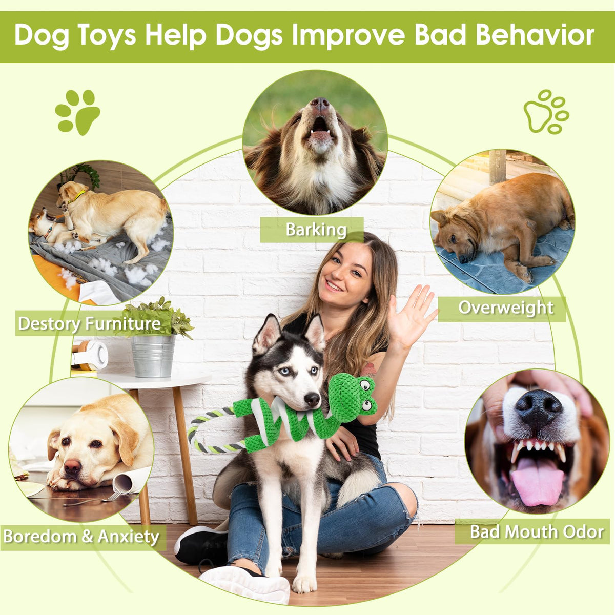Eneston Duty Dog Rope Toys With Crinkle Paper & Squeaker - Interactive Tug Of War Pull Toy For Puppy Boredom, Teeth Cleaning -To