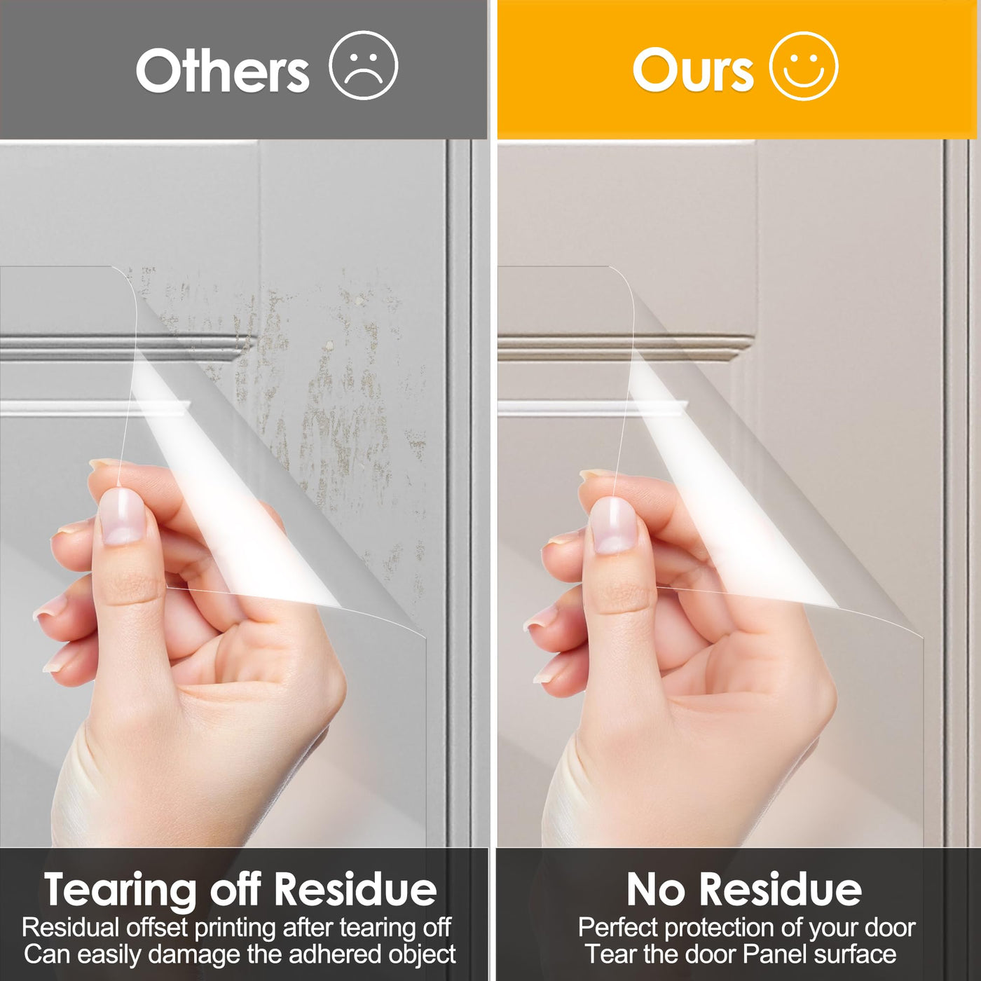 Q: Can I remove the protector easily if needed?A: Yes, the Enhanced Door Protector can be removed without leaving sticky residue behind. If you need to reposition or replace it, simply peel it off gently from the surface.