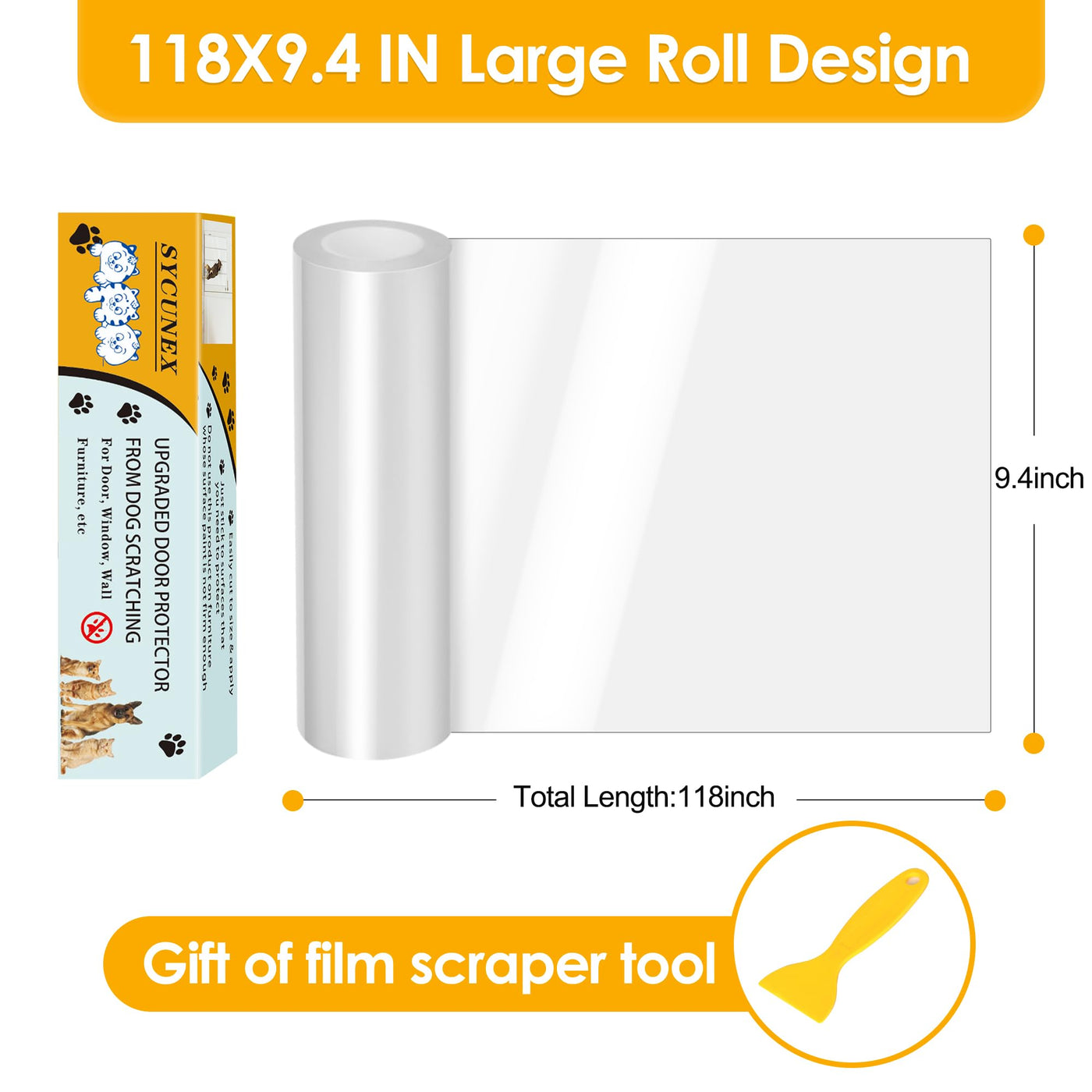 Enhanced Door Protector: Thick Clear Heavy-Duty Anti-Scratch Guard - Flexible Pet Scratch Shield For Doors, Furniture, Windows, And Walls, Easy To Install And Clean (9.4' W X 118' L)