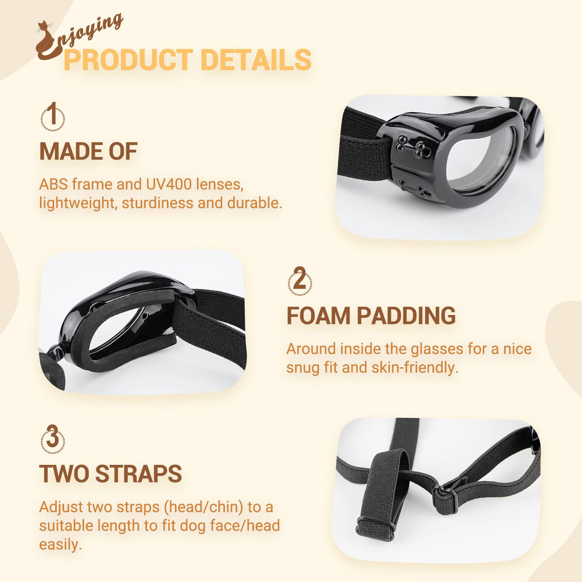 Enjoying Clear Dog Goggles Small Breed, Uv Protection Dog Sunglasses Small Breed, Driving Puppy Eye Protection, Windproof Dustpr