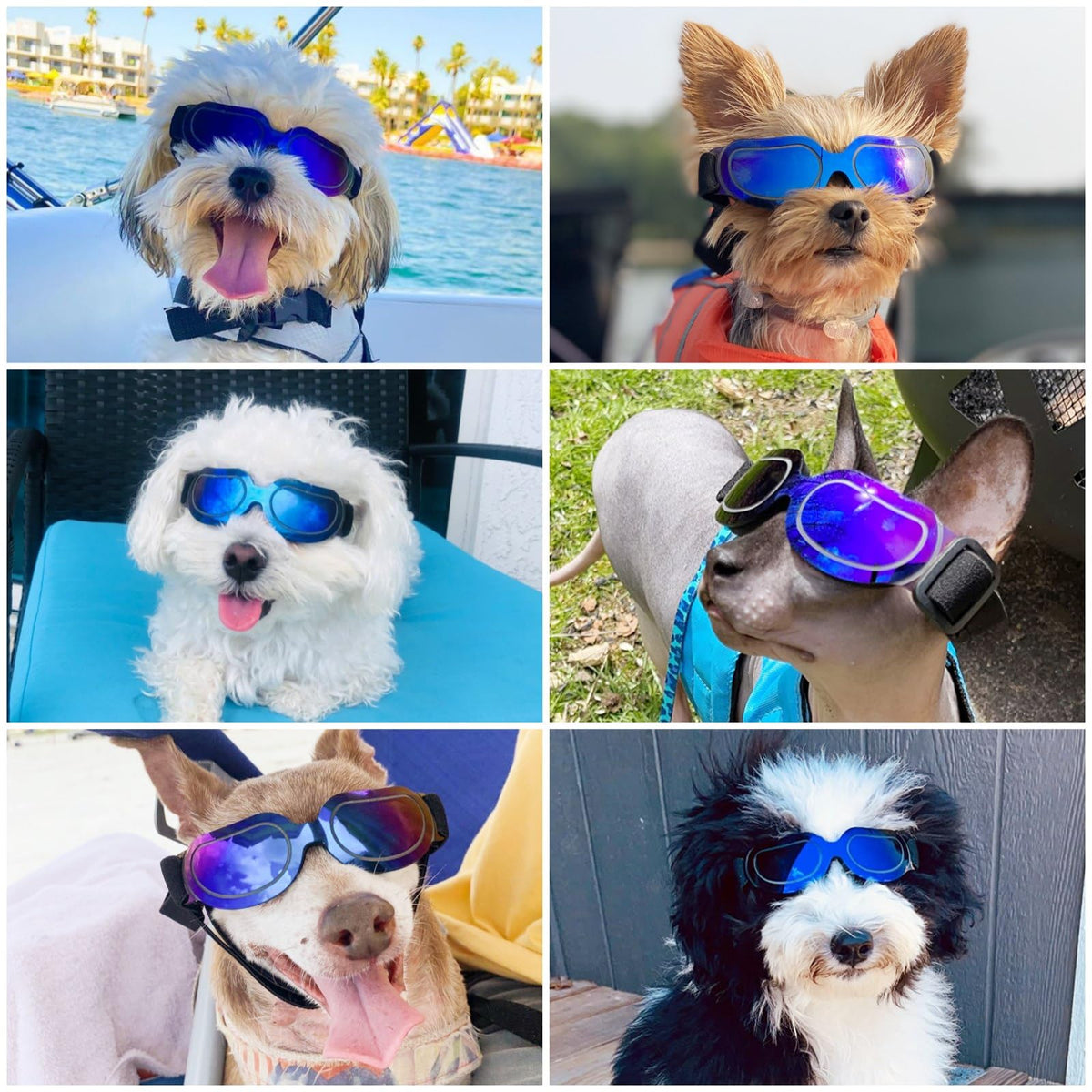Enjoying Dog Goggles Small Breed, Puppy Sunglasses Uv Protection, Summer Dog Eye Protection For Small Dogs Outdoor Driving Riding, Winter Antifog Dog Snow Goggles, Cool Blue