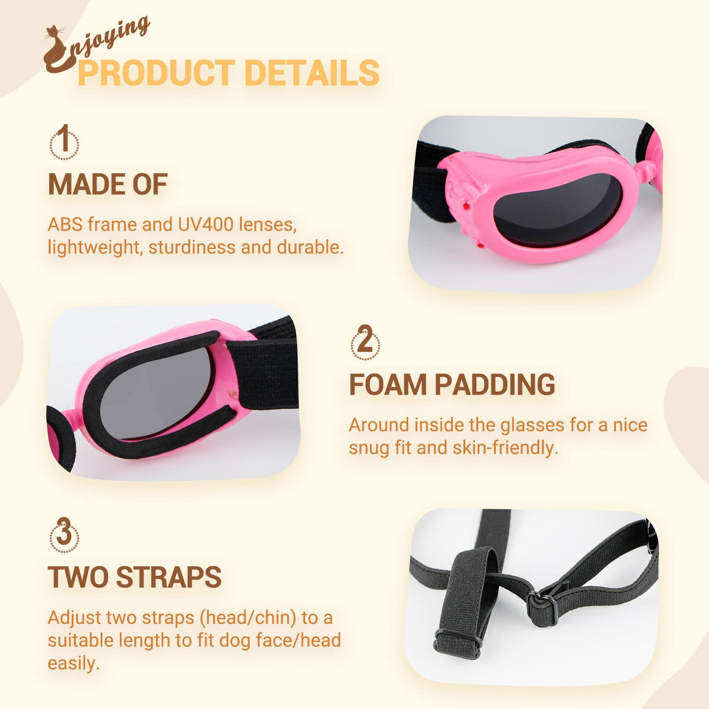 Enjoying Dog Goggles Small Breed, Uv Protection Sunglasses For Dogs Small Breed, Windproof Driving Doggy Goggles, Snow Day Dog Eye Protection, Anti-Fog Dustproof, Adjustable Straps, Pink