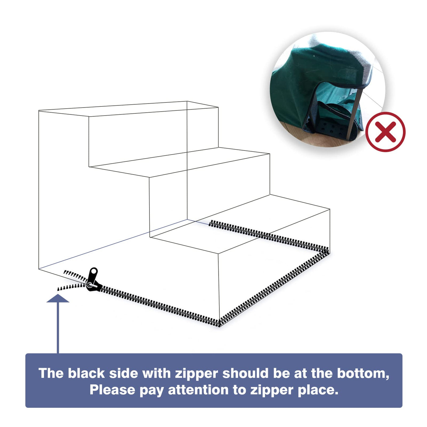 Q: Are the dog stairs easy to assemble?A: Yes, the dog stairs require assembly, and the installation instructions are included to guide you through the process. Ensure that the zipper is positioned correctly during assembly.