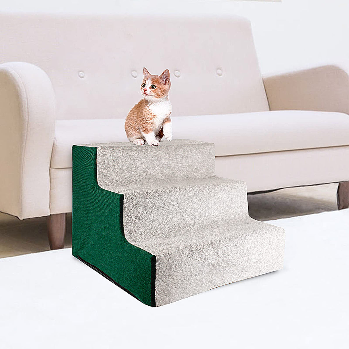Enjoying Dog Stairs For Small Dogs, 3-Step Puppy Ladder For Couch, Assemblable Non-Slip Doggy Cat Steps, Green/Grey