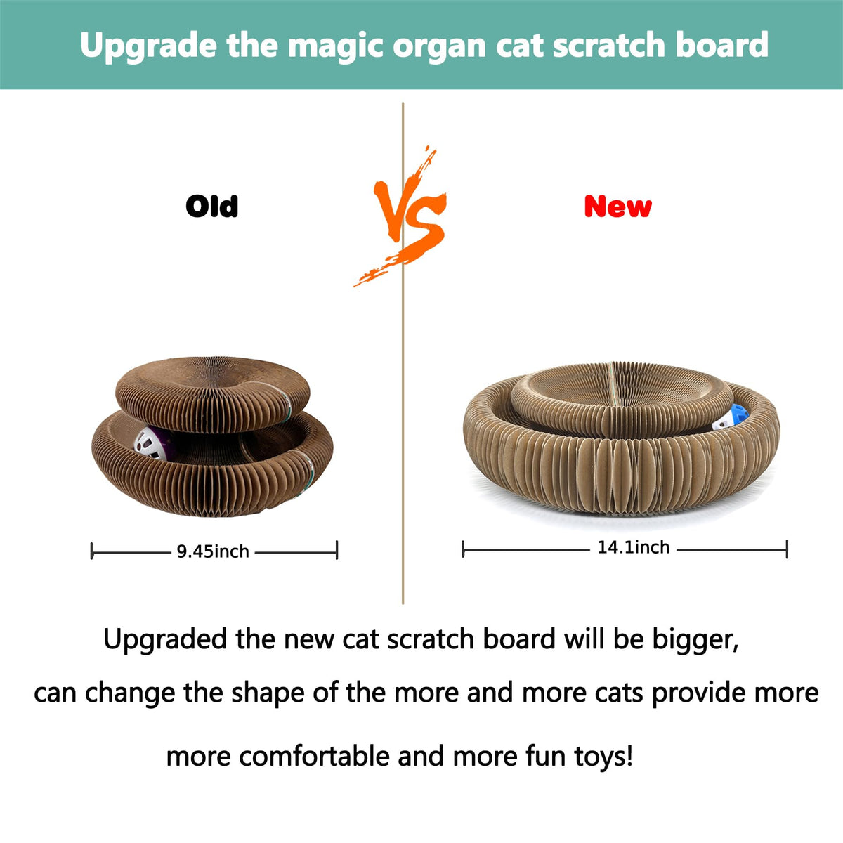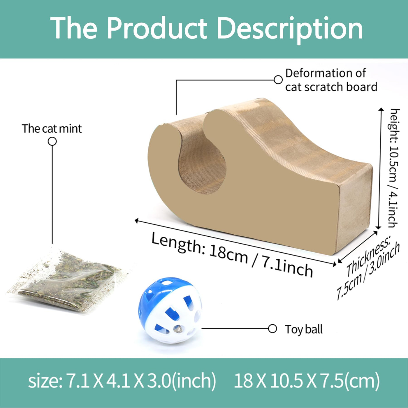Features: 1. This Interactive Cat Toy Has A Fun Shape That'S Great For Stretching & Playing On And Is Something They'Ll Love To Get Their Claws Intosuitable For Cats Of All Ages! No Cat Can Resist It, Two In One For Claw Grinding And Playing 2. Cat'S Happiness:This Cat Board Can Unleash The Cat'S Nature, From Childhood To Adulthood, It Can Accompany It For A Long Time, And It Can Also Save You Money On Other Scratching Boards. 3. Why A Cat Needs A Scratching Board:It Destroys Your Furniture, Punctures Its Own Pads When Sharpening Nails, And Is Often Boring When You'Re Not Home Without Enemies Scratching. 4. Cat Scratching Board Materia:Choose Encrypted And Thickened Corrugated Paper Material. High-Quality Environmentally Friendly Corrugated Paper Is Selected, And The Honeycomb-Type Encryption And Thickening Type Has Tight Gaps, Which Is Strong And Durable, And Does Not Hurt The Claws. 5. Cat Claw Board, Play, Rest:It Can Be Folded Into A Bone Shape, Folded Into A Crib To Sleep In, Or Scratched At Will To Make Cats Love Claws. Specifications: Development Size: 14.1X14.1X4.3Inch Package Size:7.87X4.52X3.14Inch Package Include: 1X Toy Bell Ball(Random Color) 1X Cat Claw Board 1X Catnip