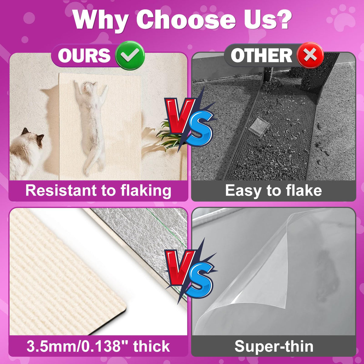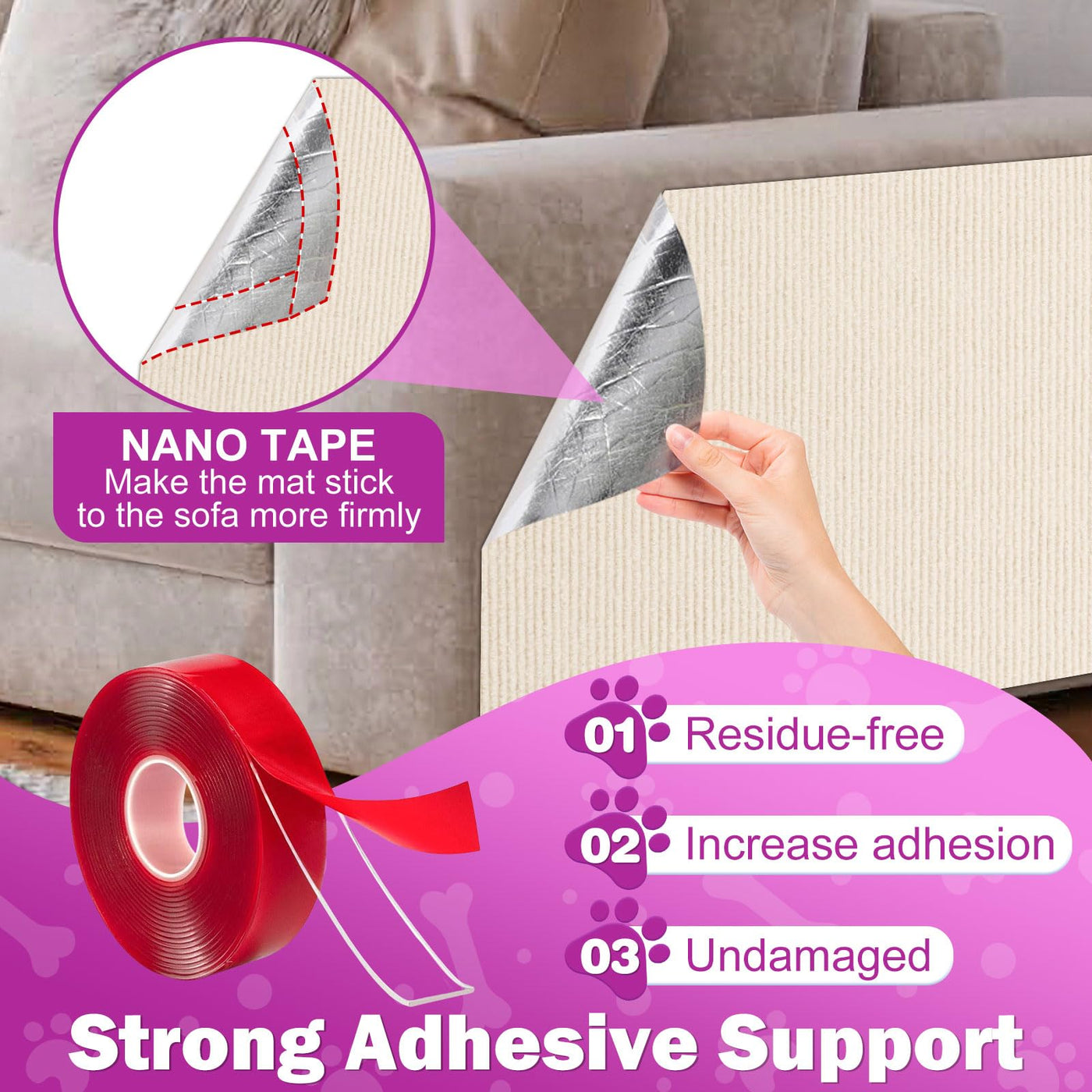 Enonci Anti Cat Scratch Couch Furniture Protector, 78.7X15.8 Wall Corner Scratcher Pads Mat, Diy Climbing Scratching Carpet Post
