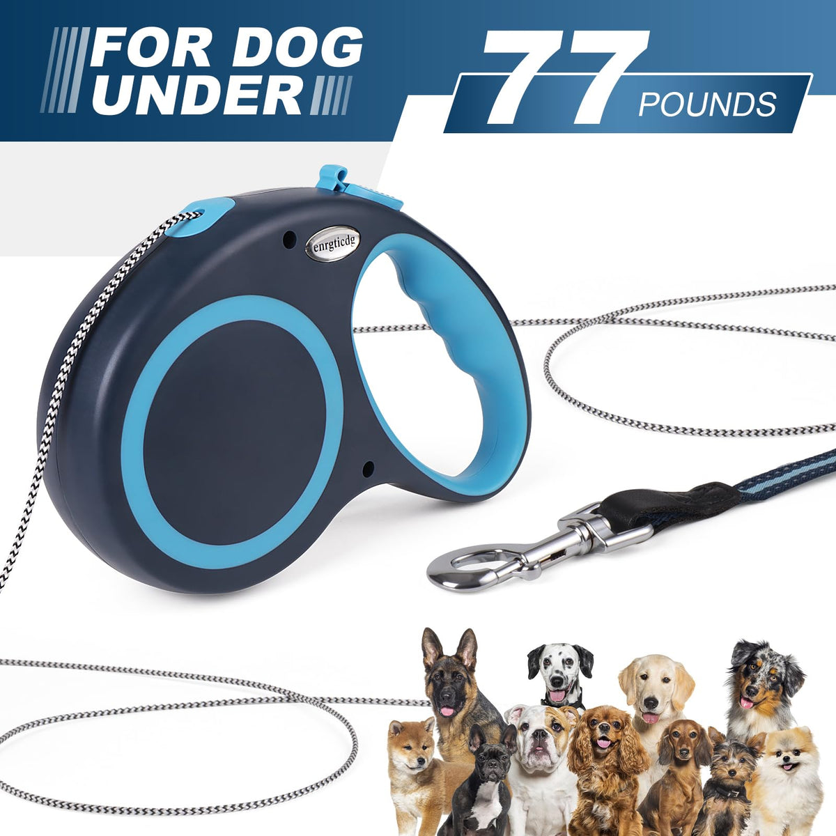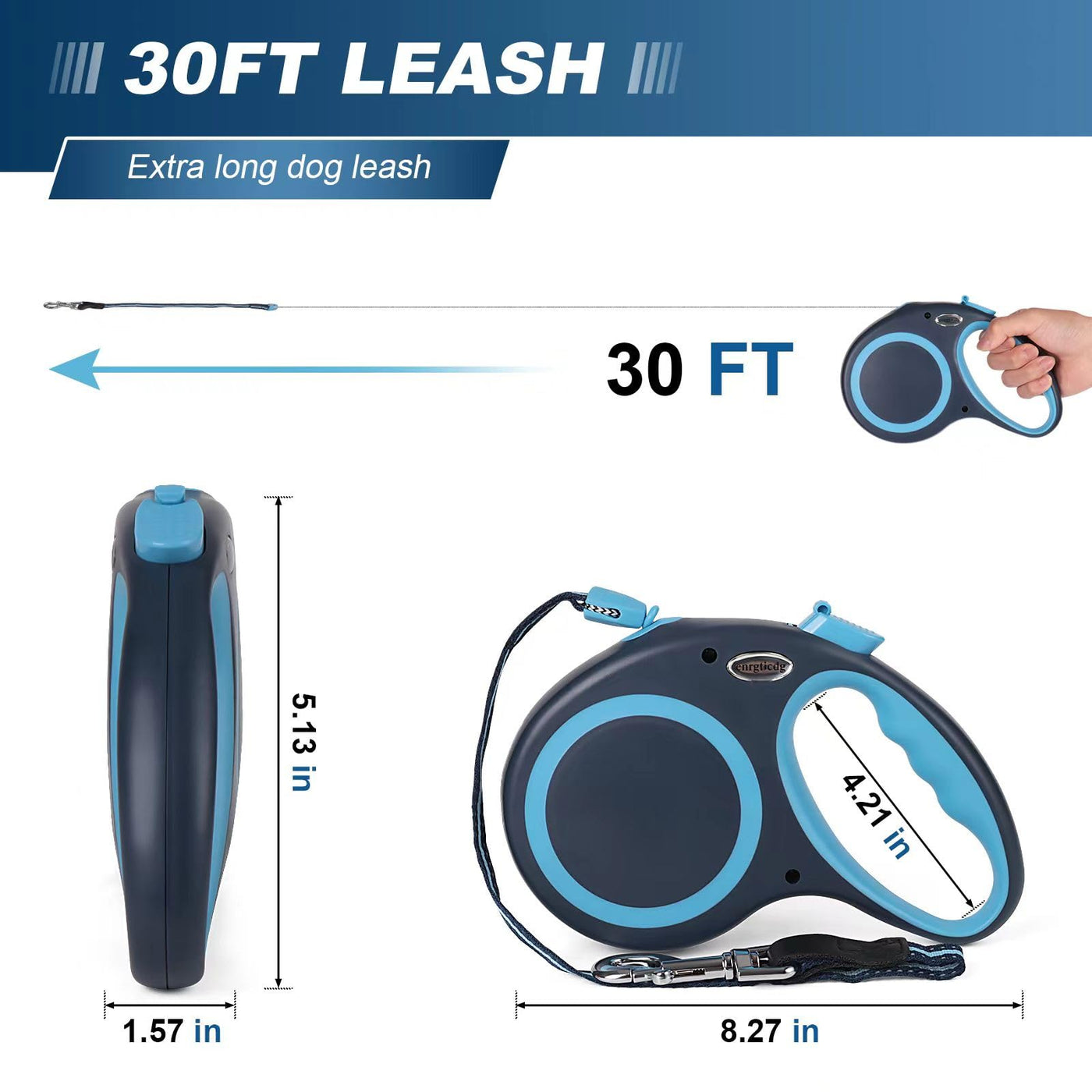 Enrgticdg 30Ft Retractable Dog Leash,Heavy Duty Great Leash For Dog Up To 77 Lbs,Night Reflection,One-Handed Brake, Strong Nylon