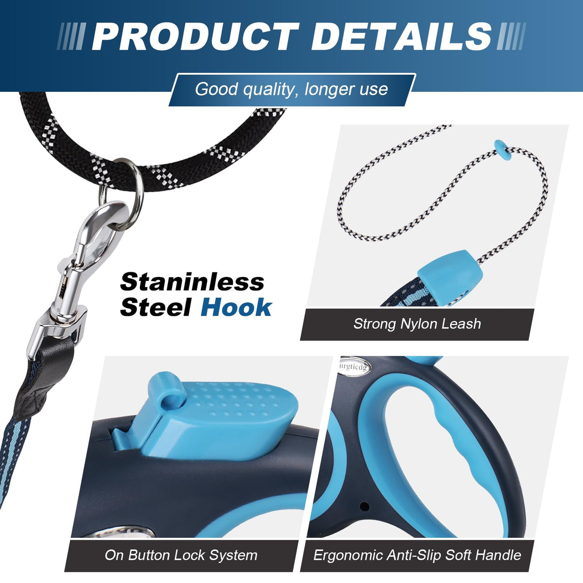We Are Committed To Creating Reliable Quality Dog Leash. This 30 Foot Retractable Lead Rope Is Made Of High Quality And Easy To Operate. Let You Better Enjoy The Time With Your Pet.