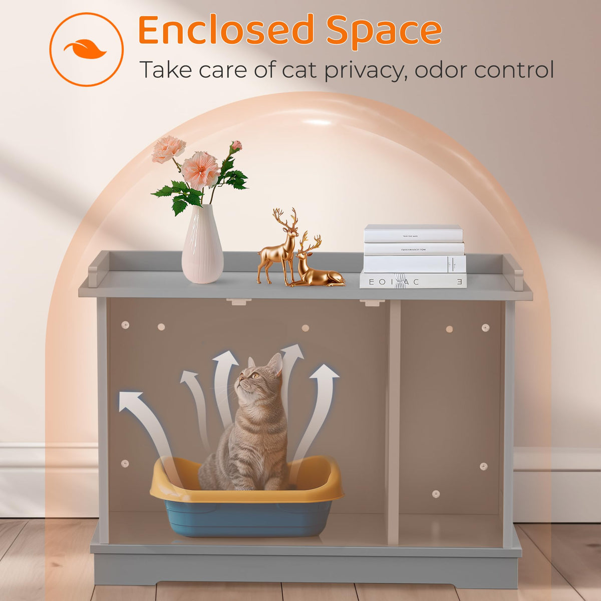 Epetlover Cat Litter Box Enclosure Extra Large Wooden Litter Box Furniture Hidden With Removable Divider, Indoor Cat House Night
