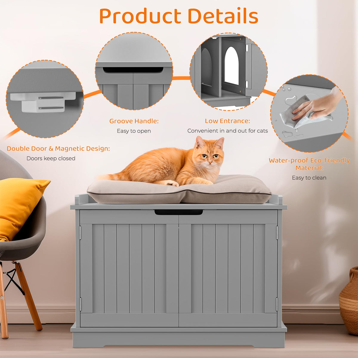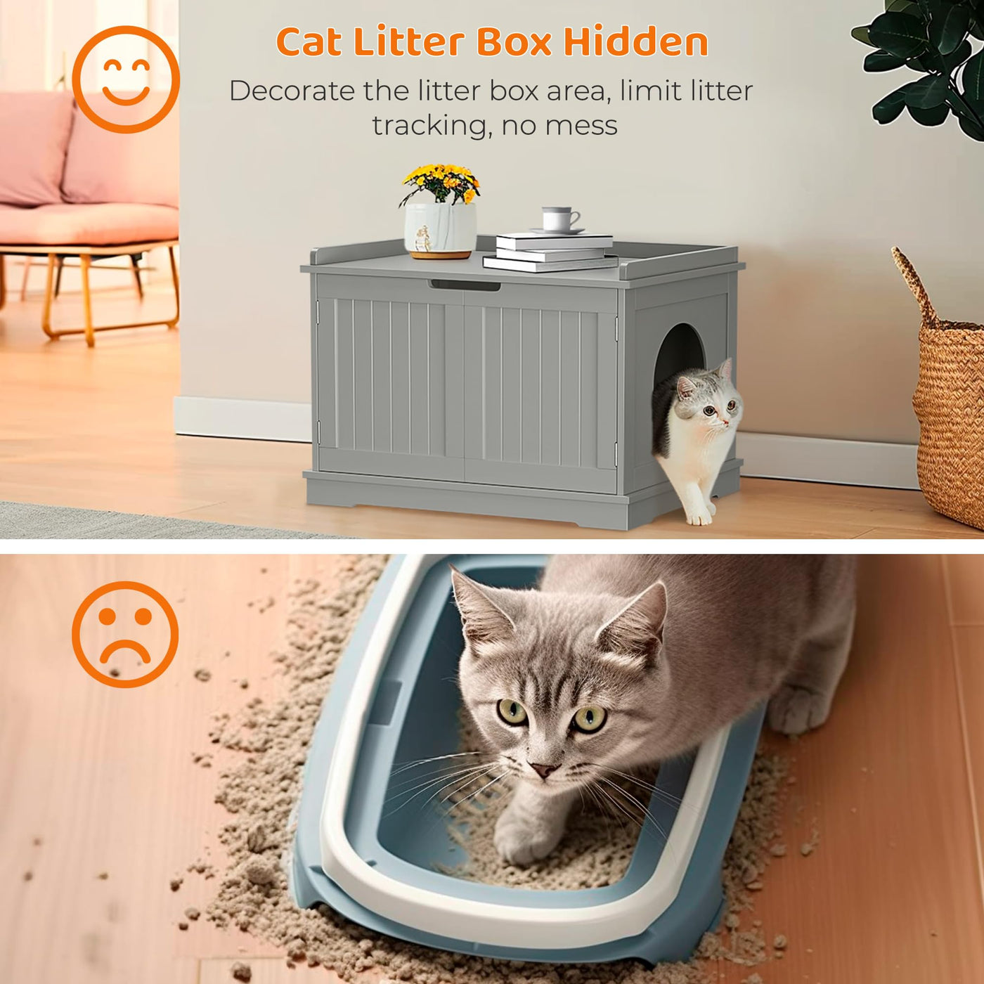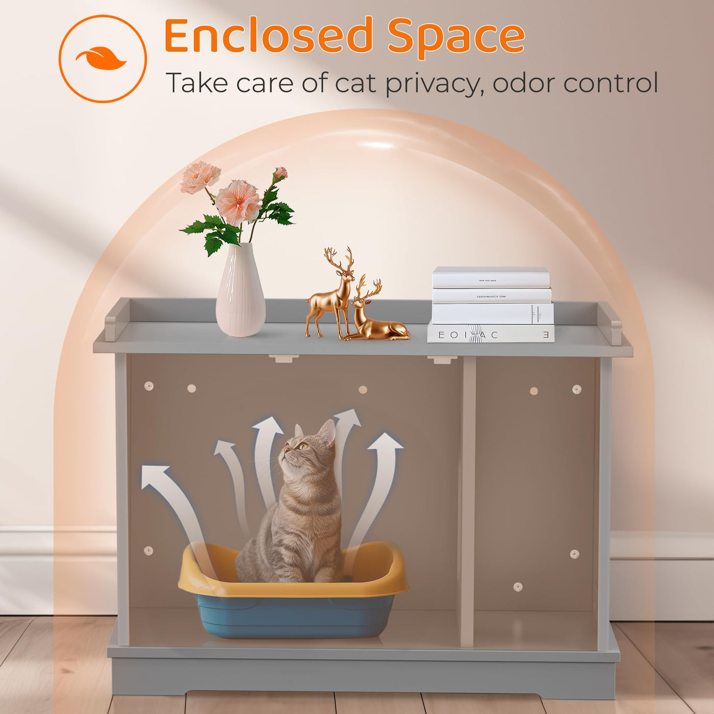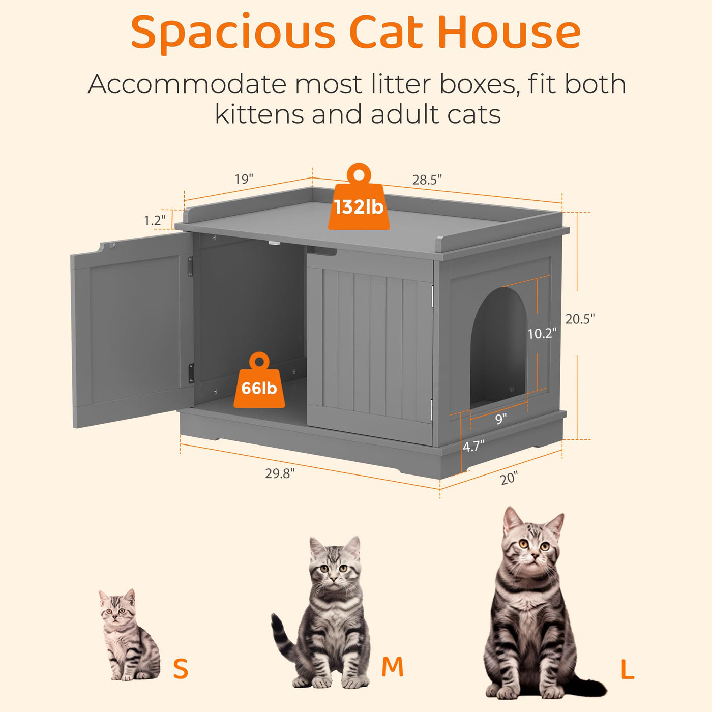 Descriptionnothing Is More Important Than Having A Privacy Place For Your Cats To Process Their Potty Timeour Cat Litter Box Enclosure Provides Your Cat A Covered Toilet So That They Can Poop With Privacy! They Will Feel Like They Have Their Own Secret Space When They Need To Do Their Own Thing As This Is Designed Enclosedfeatureseasy To Clean--You Can Conveniently Pull Out The Litter Box And Scoop Out Your Cat Litter With Easethis Decorative Pet Furniture Adds A Smart Design To Your Homethe Wide Tabletop Provides Space For Household Itemssafe And High-Quality Engineered Board Ensure A Long-Term Usespecificationmaterial: Mdf + Ironexternal Dimensions: 29.8''L X 20''W X 20.5''Hinterior Dimensions: 18.9 L X 18.3''W X 16.5''H; 7.9''L X 18.3 W X 16.5''Hweight: 36.4Lbs
