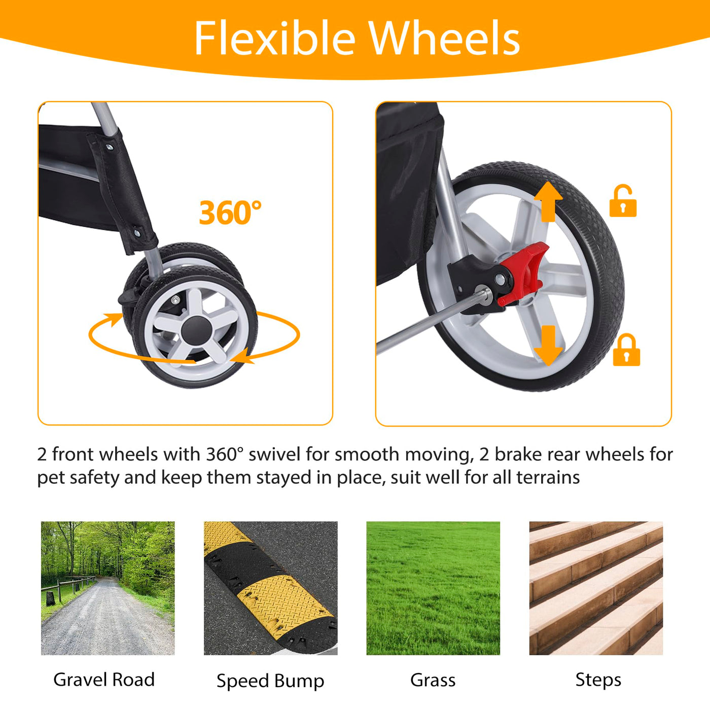 Epetlover Pet Stroller For Dogs, Black 4 Wheels Cat Strolling Cart Foldable Travel Carrier, Waterproof Puppy Jogger Stroller Wit