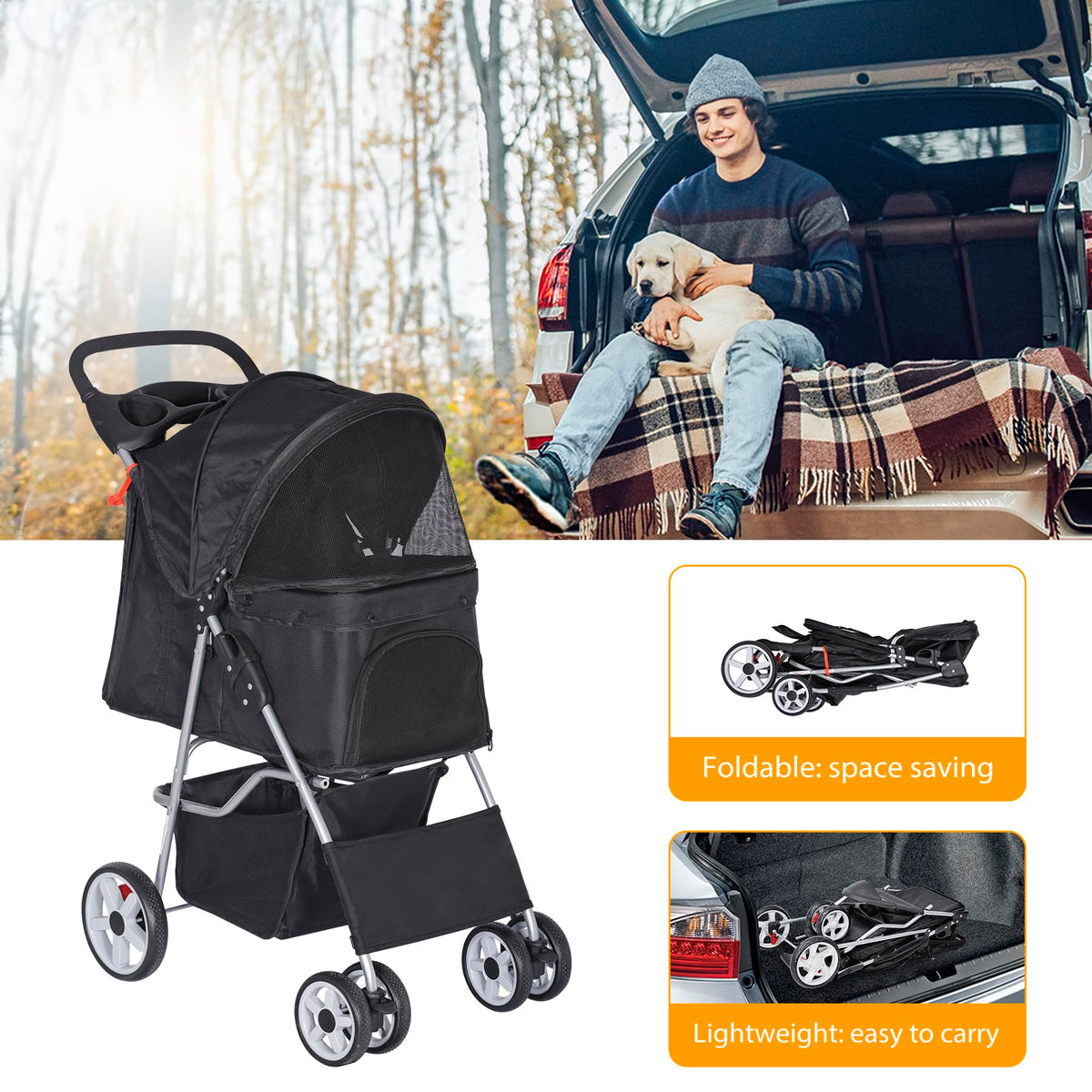 Benefitsthis Pet Stroller Is Ideal For Small Dogs Who May Be Recovering From An Injury Or Simply Need A Little Extra Help Going For A Walk, Cats Who Love The Outdoors, Rabbits, Ducks And Morecanopy Opens And Closes Easily, And Conveniently Folds Up Under The Canopy Hood And Out Of Your Pets Way. Designed With Convenient Rear Storage Pouch And Storage Pocket To Keep Your Belongings Secure, With A Rear Zipper For Easy Accessfolds Flat For Convenient Storage And Assembles Easily Without Tools. Interior Safety Tether And Hidden Front Steel Bar Ensure A Safe Enclosure For Your Pettake Your Fluffy Favourite Out In The Sunshine With A Pet Stroller That Safely Contains Them And Gives Them A Wonderful View And Fresh Airspecificationscolor: Blackdimensions (Overall): 29.53 X 18.5 X 39.37Inweight: 10.7Lbsholds Up To: 33 Poundsintended Pet Type: Dog Catinterior Dimensions: 21.1 X 12.99 X 20.8Inbasket Dimensions: 9.8 X 11.4 X 7(11)Incollapsed Dimensions: 35.4 X 17.7 X 11.8Insafety Belt*2: 15.3 X 0.59Infront Door Size: 11 X 7.8Inback Door Size: 13.1 X 16.7In