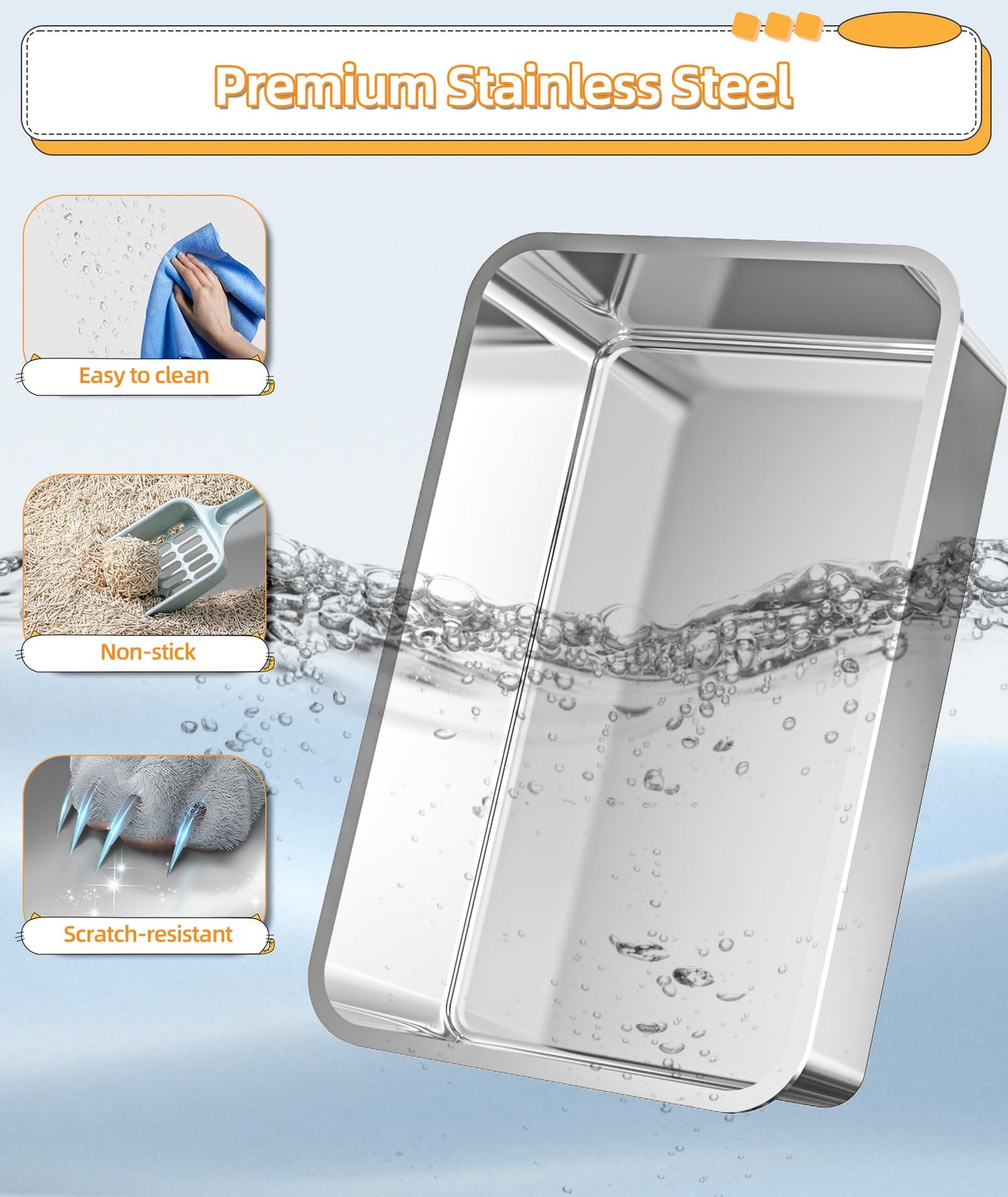 Epn Stainless Steel Cat Litter Box With Lip, Xxl Extra Large Enclosed Removable Metal Litter Box For Big Cats, High Sided Enclos