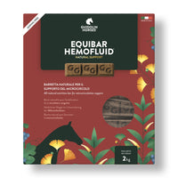 EquiBar, the newest brand from Guidolin Horses, is an innovative product that aims to support the wellbeing and health of horses. These special functional bars are created with the use of herbal ingredients and all-natural plant substances that can provide effective therapeutic treatment of major horse illnesses. Equibar Hemofluid - Bar-shaped complementary feed for horses, to be administered on its own or together with meals, prepared using medicinal herbs with effective anti-inflammatory, antioxidant, blood fluidity and draining properties, which act on the functioning of the microcirculation with a natural invigorating, toning and anti-inflammatory action. Hemofluid should be integrated in the daily diet of fully active horses, as well as those at rest, such as elderly horses. Administered regularly, its balanced and completely natural formula guarantees gradual positive action on the animals microcirculatory system without placing strain on other organs, such as the liver. The use of Hemofluid is recommended for horses subject to navicular syndrome, swollen limbs and idiopathic synovitis, as well as tendinitis. It is a balanced formula that combines the precious active ingredients of willow, grape and ginkgo biloba to aid the optimal functioning of the microcirculation and, consequently, the well-being of the horse. The main advantages of using Equibar Hemofluid are: - Improved microcirculation, greater fluidity and flow of blood, particularly in the limbs and hooves. - Reduction of swelling present in the form of joint and tendon idiopathic synovitis. - Vigour and tone of limbs and body. - Benefits have also been found in terms of increased shine of the coat, resulting from oxygenation and antioxidant action, and the alleviation of itching caused by insect bites.