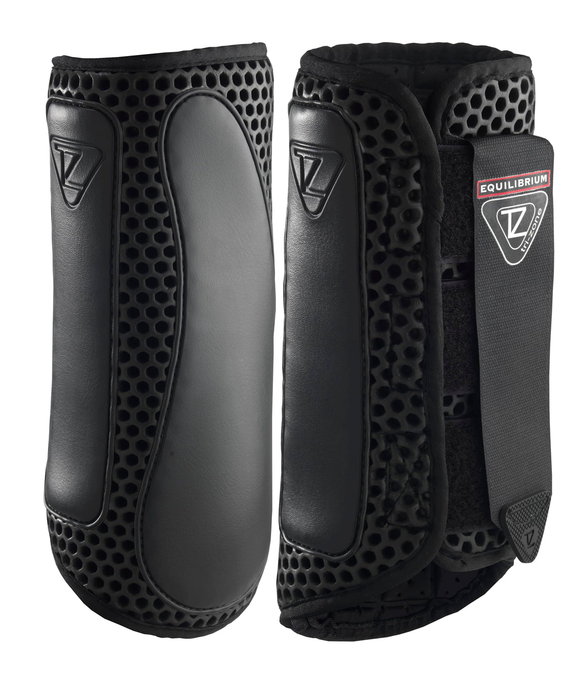 Tri-Zone Impact Sports Boots High impact horse cross country boots independently tested protection that you can trust that will also keep your horses’ legs cool allow them to move freely and won’t weigh them down or hold water. With maximum protection ideal for Cross Country Polo and Racing. THE DETAILS: • Protects from concussion and penetration injuries. Tested to protect if the horse was to hit a solid fence or strike itself.• Lightweight even when wet! Save your horse the effort and reduce tiredness.• Breathable horse boots allows heat to escape with unique multilayer mesh design. Keeping legs cool is so important for helping to prevent injury to tendons and ligaments.• Flexible design to allow freedom of the horses’ movement. Stiff or tight boots can affect stride and joint movement.• Trusted boots developed using latest research and independently tested. Read more about our testing.• Moulds round the leg for a perfect fit.• Specially designed front and hind boots.• Supplied in pairs. What is the inspiration behind the Impact Sports Boot?There are so many things to consider when purchasing horse boots Equilibrium wanted to offer a boot where you didnt have to compromise at all. Generally if you go for a hard shell/very protective boot it can be heavy inflexible and unbreathable. Likewise a lightweight boot might be more breathable and flexible but wont offer the protection that is needed. The Impact Sports Boots offers protection that is tested to withstand overreaching hitting a cross country fence etc yet still retains all the other desired features to keep your horse comfortable and their legs in good shape! Protection provided by the Impact Sports Boots for horses.The boot design uses a five-layer system each chosen for their unique properties.The first layer is providing an inner lining that sits against the horses leg. Made from perforated EVA (Ethyl