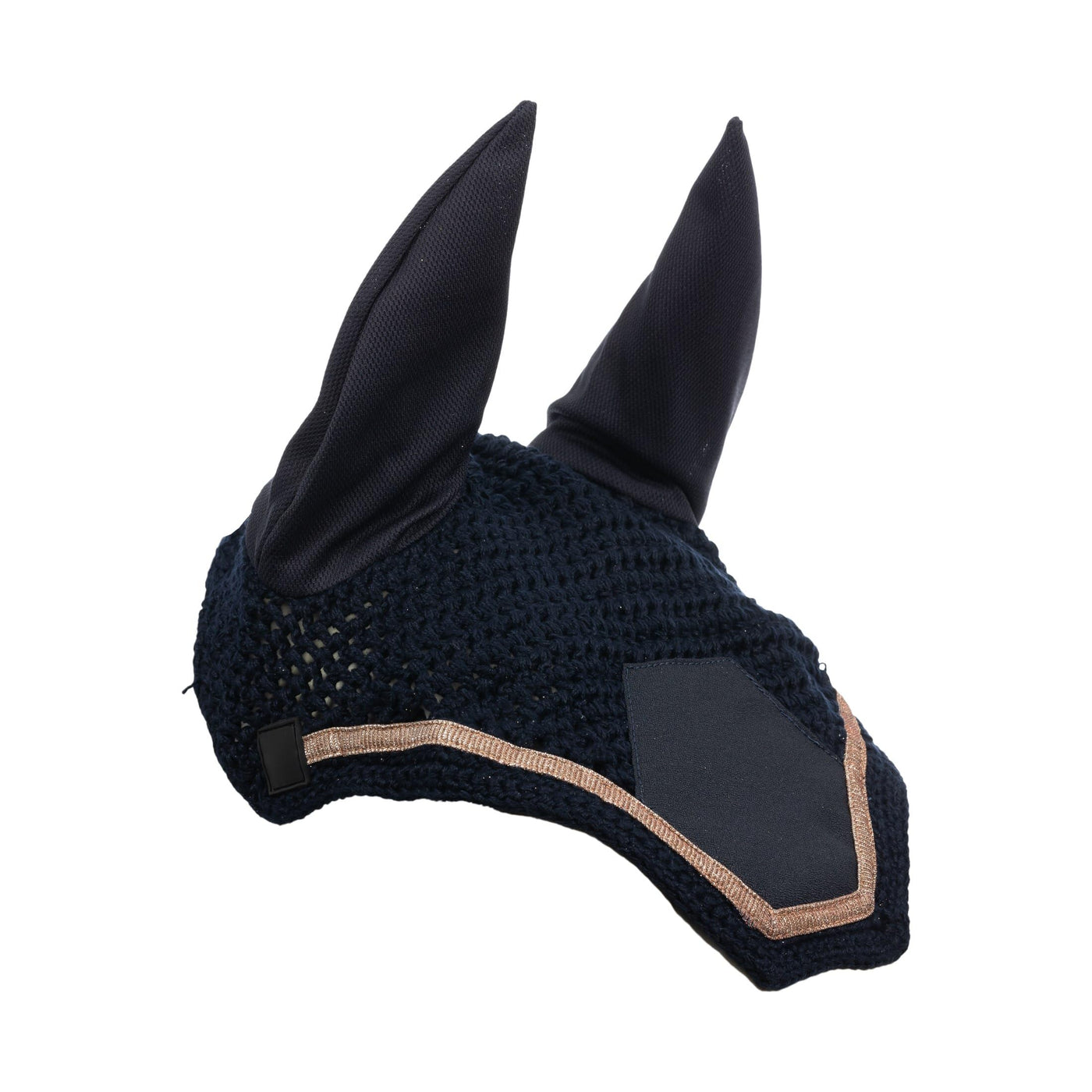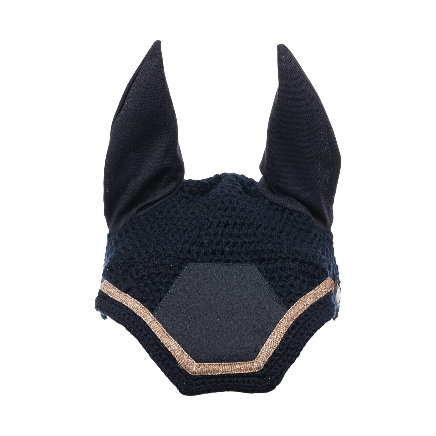 Add a touch of glamour to your horses gear with the Equinavia Glam Ear Net This crocheted ear net features stretch nylon ears for a comfortable fit. The center patch is made with the same subtle shimmer fabric as the saddle pads in the Glam collection, creating a cohesive look. Additionally, the ear net is lined with shimmer tape to coordinate with the Glam saddle pads. This ear net is the perfect accessory for your horses ensemble.