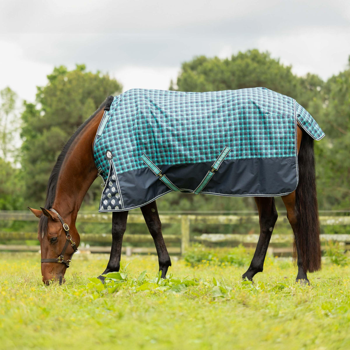 Equinavia Norse No Fill Horse Rain Blanket (0G) | Waterproof Lightweight Turnout Sheet - Black - 66 In - Navy/Turquoise - 69 In