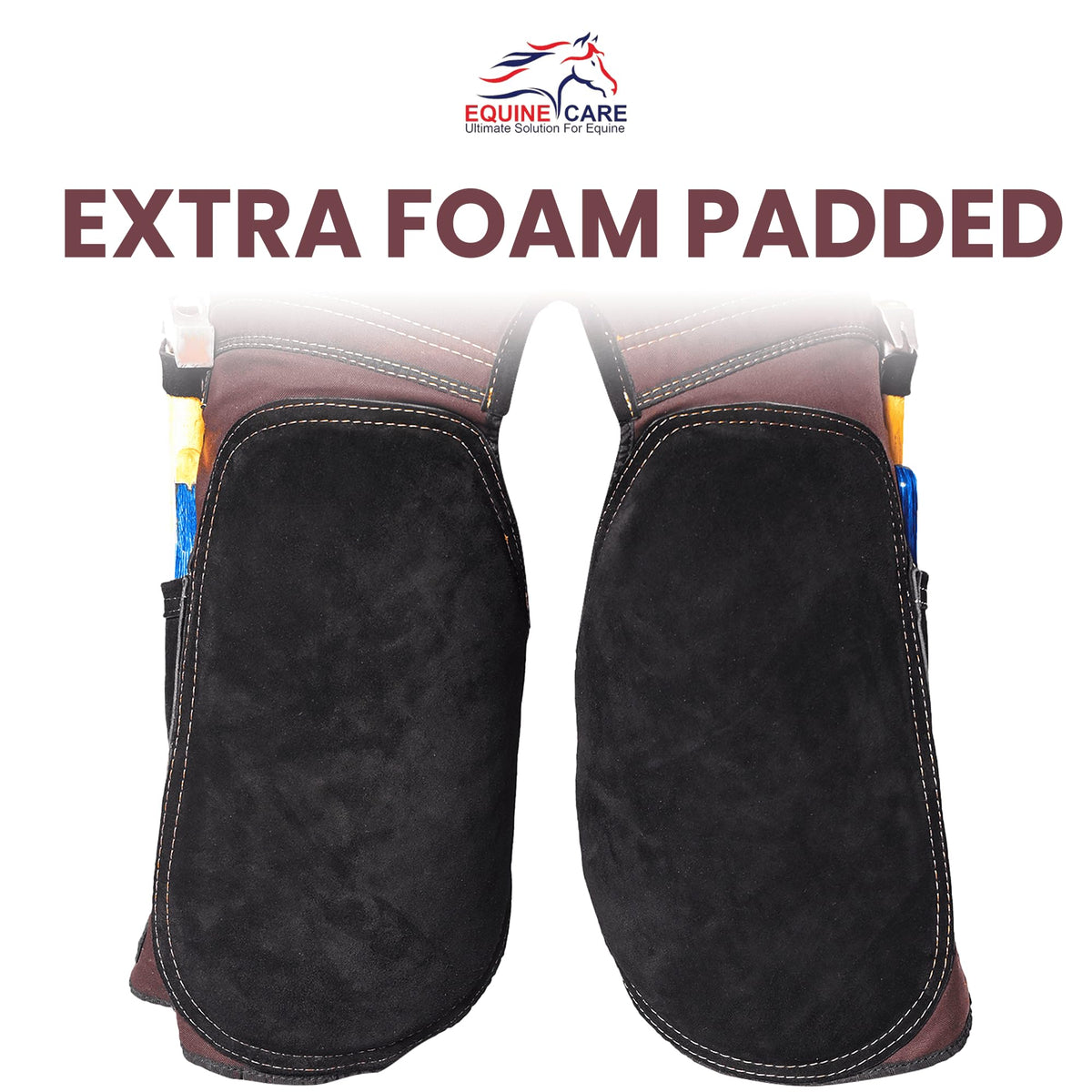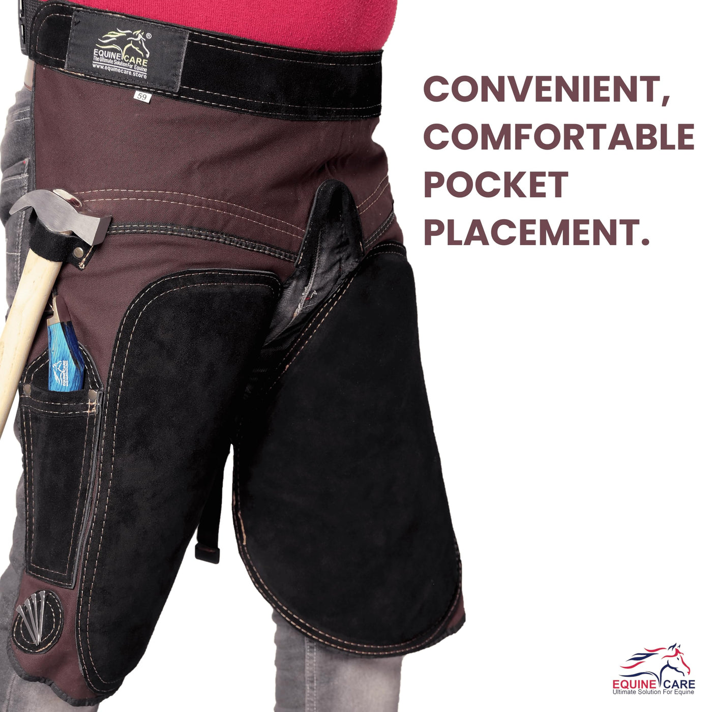Upgrade Your Farrier Toolkit With Equine Cares Farrier Apron For Women Equip Yourself With The Ultimate In Protection, Durability, And Comfort With Equine Cares Farrier Apron Chaps, Specifically Designed For Women But Also Suitable For Men Of Shorter Stature. These Farrier Apron Are Tailored To Meet The Unique Needs Of Female Farriers While Offering A Comfortable Fit For Men Of Shorter Stature. Perfect For Horse Shoeing, Hoof Trimming, And Various Equine Care Tasks, This Farrier Apron Is Engineered To Withstand The Demands Of Rigorous Daily Use. Premium Materials For Long-Lasting Durability Crafted From Genuine Cowhide Suede Leather And Reinforced With Durable Canvas, This Farrier Chaps Is Built To Endure Tough Conditions. The Sturdy Materials, Combined With Foam Padding, Provide Exceptional Protection Against Sharp Tools And Heavy Hooves, Ensuring Long-Lasting Performance And Enhanced Comfort. This Horse Shoeing Chaps Is An Essential Addition To Any Farriers Gear, Offering Robust Protection Day After Day. Comfortable Fit With Enhanced Breathability Designed With An Air Mesh Backing, This Farrier Apron Ensures Breathability, Keeping You Cool And Comfortable During Extended Tasks. The Adjustable Waistband Fits Waist Sizes From 28 To 52 Inches, Providing A Customizable Fit With A Simple Belt That Accommodates Various Body Types. This Design Allows You To Work Long Hours With Reduced Fatigue. Maximum Flexibility And Comprehensive Protection This Farrier Apron Is Designed To Offer Maximum Flexibility And Ease Of Movement. The Wrap-Around Design Provides Thorough Protection For The Inner Thighs And Calves, While The 23-Inch Length Ensures Optimal Coverage Without Hindering Mobility. Whether Youre Shoeing Horses Or Trimming Hooves, This Farrier Apron Delivers The Protection And Flexibility You Need. Efficient Tool Storage With Hammer Loops Efficiency Is Key In Farrier Work, And This Apron Is Equipped With Practical Storage Solutions. With 2 Hoof Knife Pockets