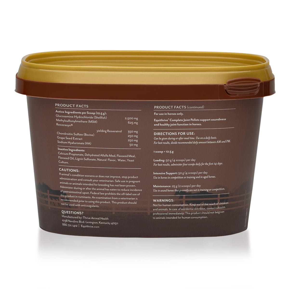MAXIMIZE YOUR HORSES JOINT SUPPORTComplete Joint Pellets horse joint supplement provides innovative joint support to horses. This exceptional equine horse supplement is designed to enhance your horses overall wellness. Complete Joint Pellets are packed with the essential elements your horse needs for advanced joint support. This horse connective tissue supplement contains Glucosamine, Chondroitin, Hyaluronic Acid and MSM, ensuring comprehensive support for your horses joints.Joint issues are common for horses, affecting their overall comfort and performance. Our blend of ingredients, including MSM for horses, assists in maintaining optimal joint function.Complete Joint Pellets are backed by research and have been shown to support soundness and mobility in horses. Our equine supplements are made with care in the heart of horse country, Kentucky.