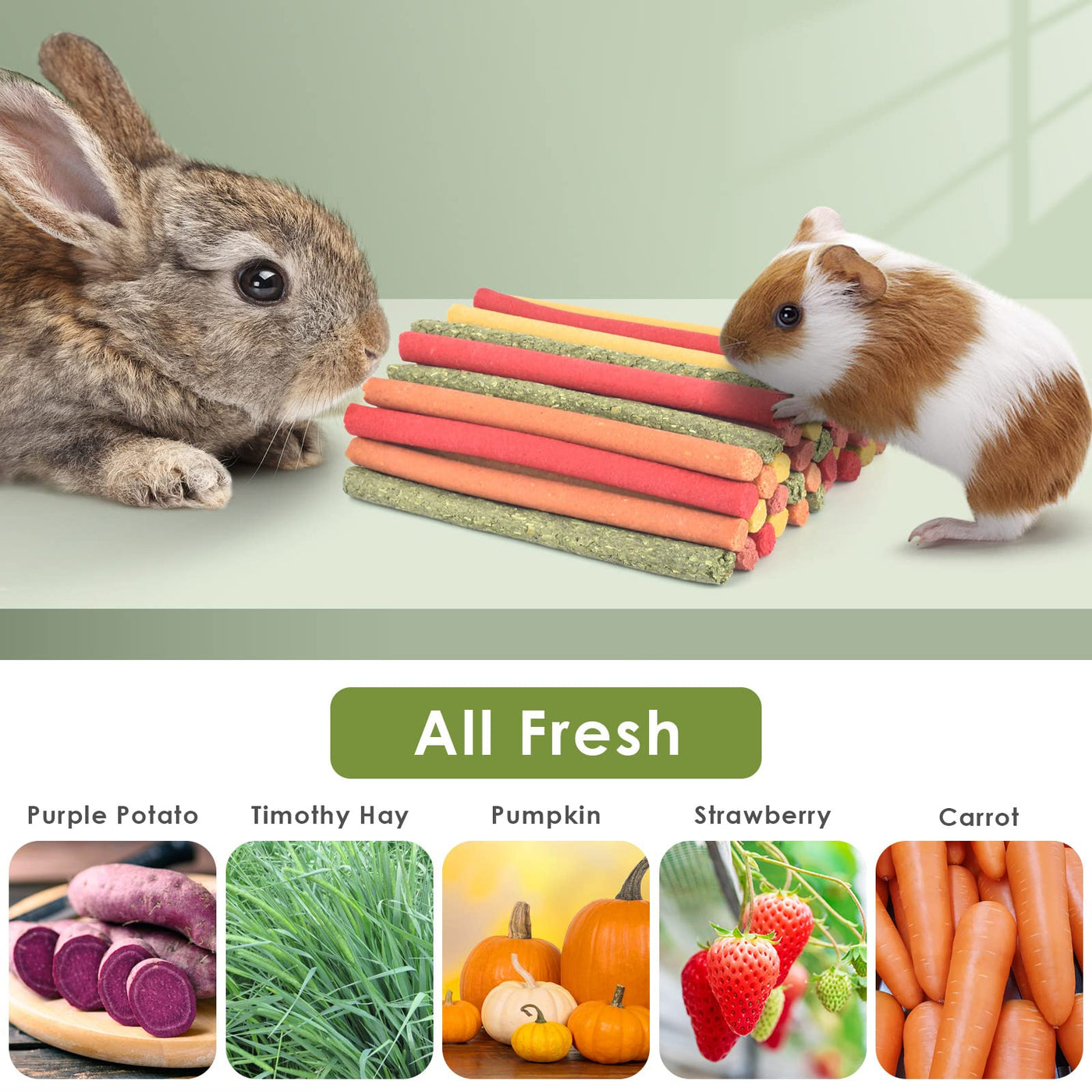 ERKOON 40Pcs Rabbit Timothy Hay Sticks, Five Flavors:PurplePotato/TimothyHay/Pumpkin/Strawberry/Carrot,Suitable Guinea Pig, Hams