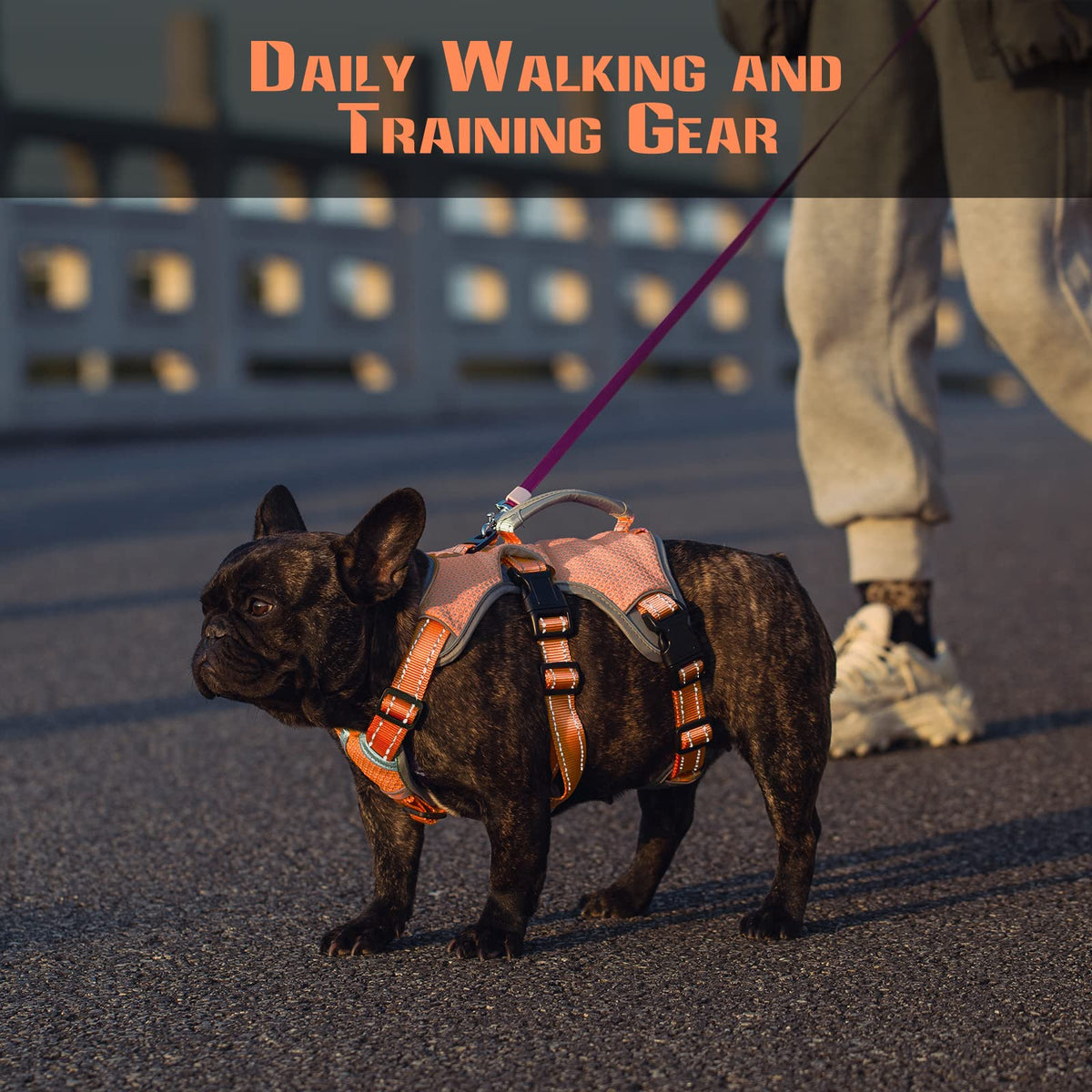 Escape Proof Dog Harness, Escape Artist Harness, Fully Reflective Harness With Padded Handle, Breathable,Durable, Adjustable Vest For Small Dogs Walking, Training, And Running Gear Orange (Small)
