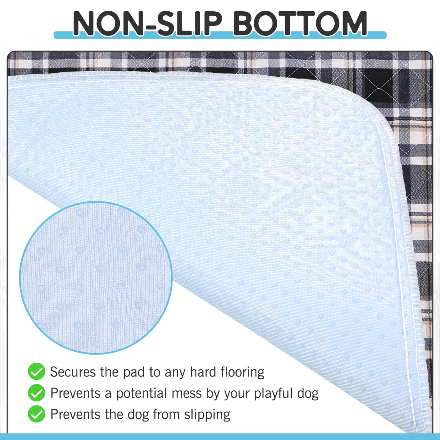 Esgpet Washable Pee Pads For Dogs - 24 X36 4Pcs, Whelping Pad For Puppy Training, Playpen Crate Bed Floor Protector, Reusable Dog Potty Pads Non-Slip, Super Absorbent & Odor Controlling, Black Plaid