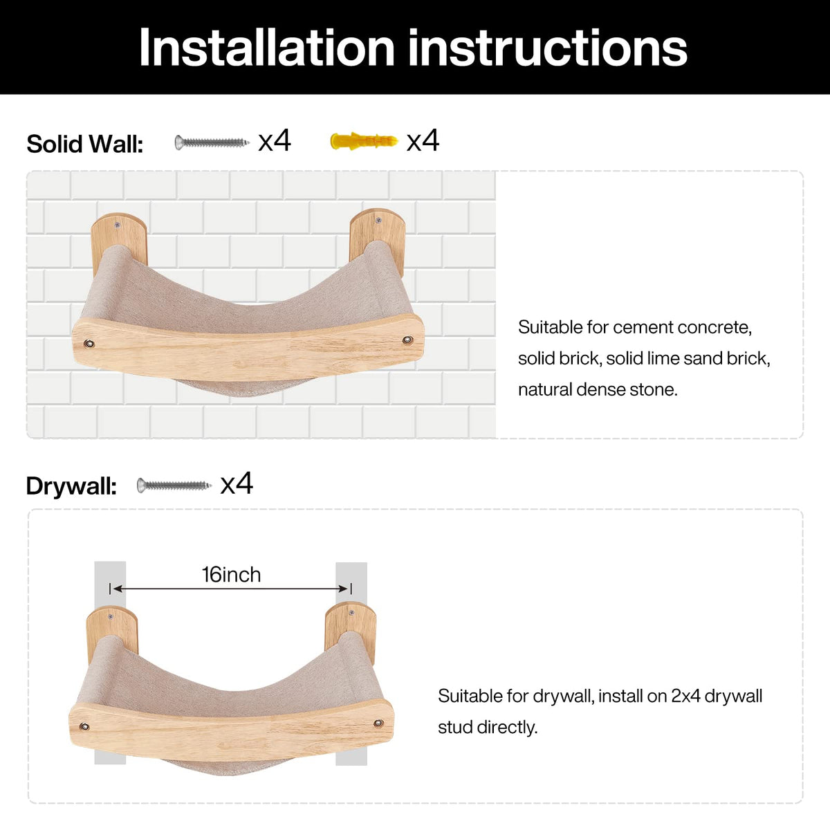CAT WALL SHELVES & BEDS FOR STUD MOUNT: This hammock can be installed on 2x4 stud it's more sturdy to install directly on drywall. And we also packed with drywall anchor
