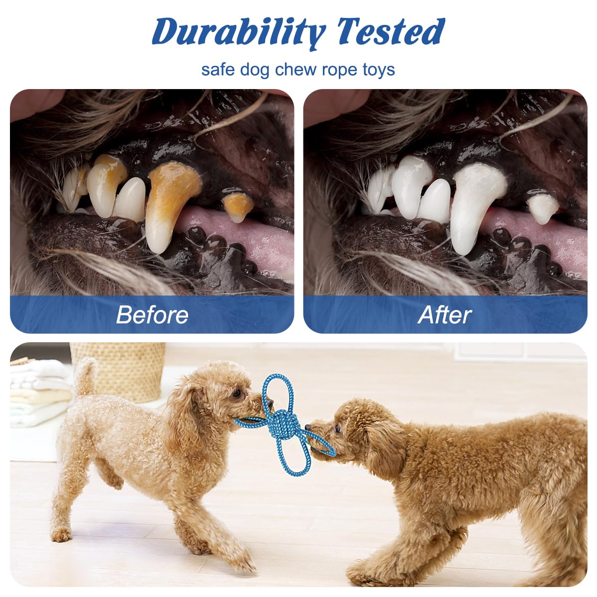 ?High-quality Material for Dog's teeth and health: Non-toxic and tasteless natural cotton rope toys can safely protect and clean the teeth of dogs. The cotton rope knot is a wear-resistant tightly woven twist. And sturdy knots make puppy teething toy stand up for aggressive chewing. It won