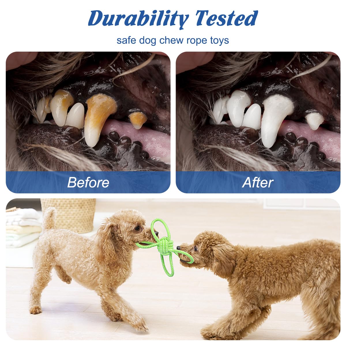 ?High-quality Material for Dog's teeth and health: Non-toxic and tasteless natural cotton rope toys can safely protect and clean the teeth of dogs. The cotton rope knot is a wear-resistant tightly woven twist. And sturdy knots make puppy teething toy stand up for aggressive chewing. It won