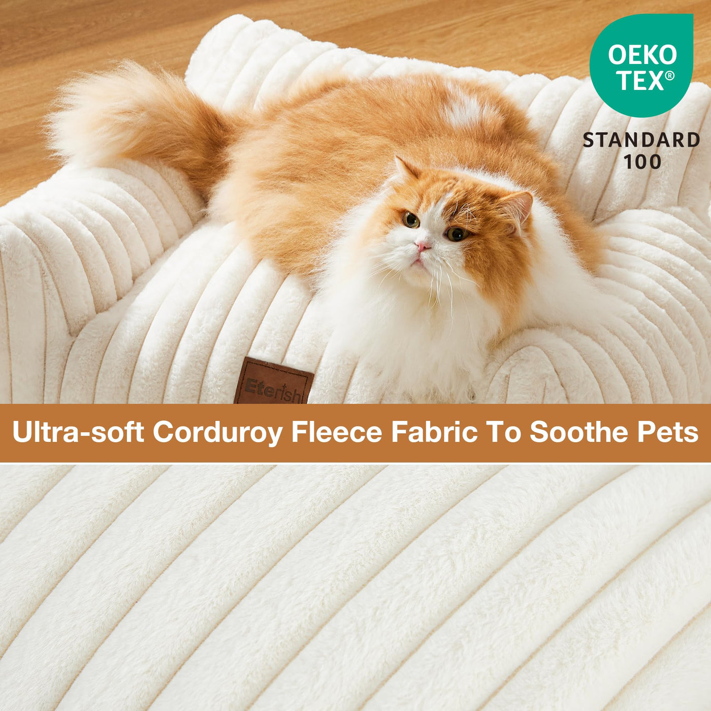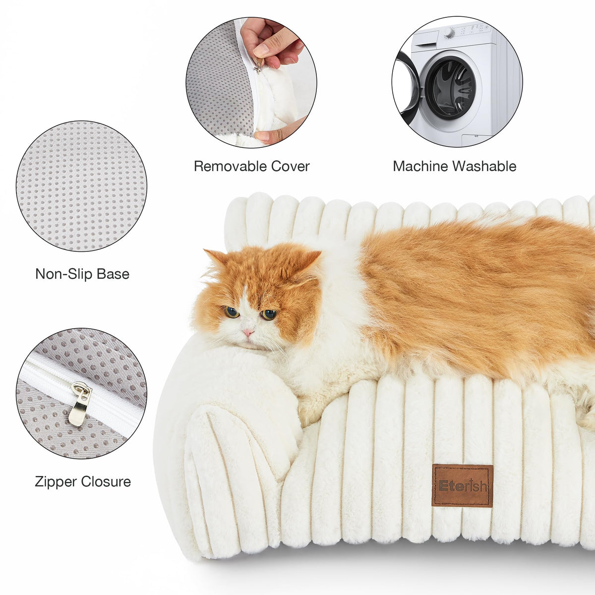 Eterish Cute Dog Couch, Fluffy Pet Couch with Soft Corduroy Fleece, Fuzzy Pet Sofa with Removable Washable Cover, Supportive Dog