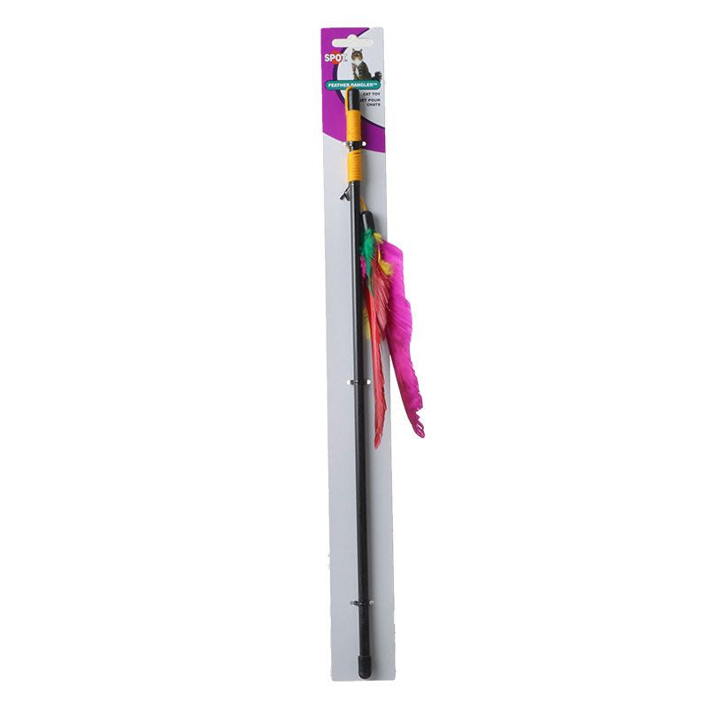 Q: Is this cat toy safe for my pet?A: Yes, the Ethical Pet Feather Dangler is designed specifically for cats and is made with pet-friendly materials. However, always supervise your cat during play to ensure safety.