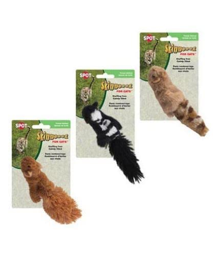 Q: How do I clean the Skinneeez toys?A: To clean the Skinneeez toys, simply spot clean with a damp cloth and mild soap. Avoid machine washing to preserve the fabric and catnip inside.