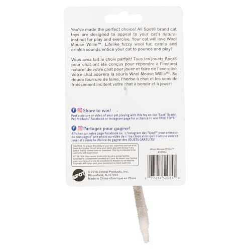 Q: Is the Wool Mouse Willie suitable for all cat breeds?A: Yes, the Ethical Pets Wool Mouse Willie is designed to be enjoyed by cats of all breeds and ages, thanks to its enticing catnip and crinkle sounds.