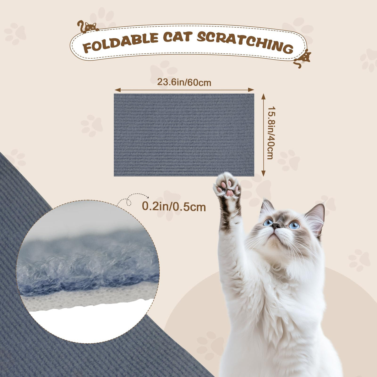 Eunice Cat Scratching Mat, Self-Adhesive Cat Scratch Carpet, Trimmable Replacement Carpet Pad For Tree Wall Cat Scratching Post