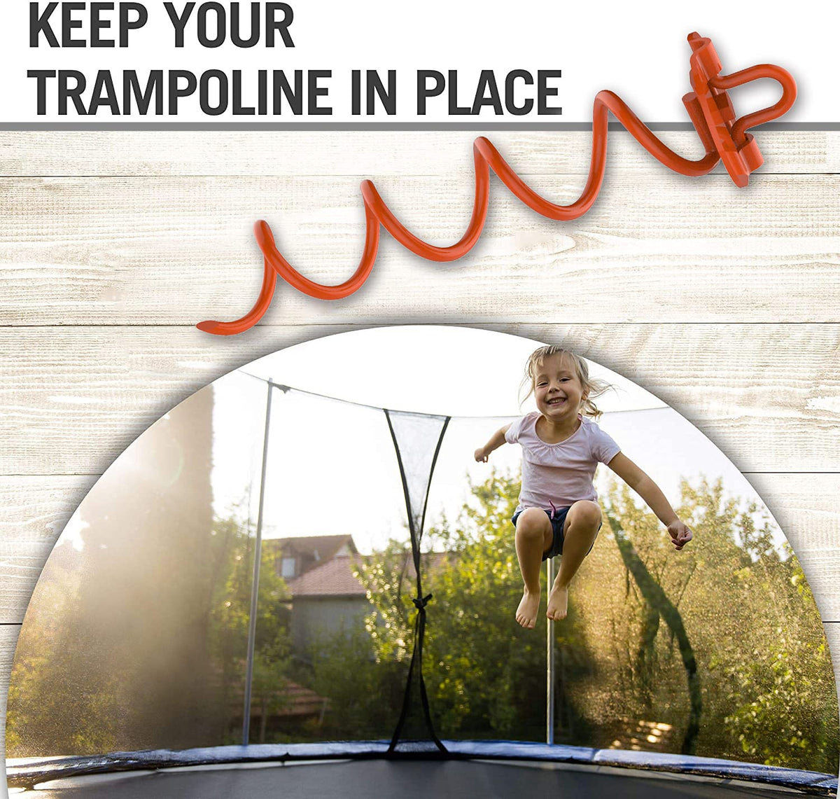 Q: How deep do the spiral stakes need to be installed for optimal stability?A: For optimal stability, the spiral stakes should be twisted deep into the ground. The spiral design allows them to anchor securely and provide the highest level of support for your trampoline.